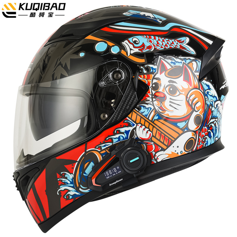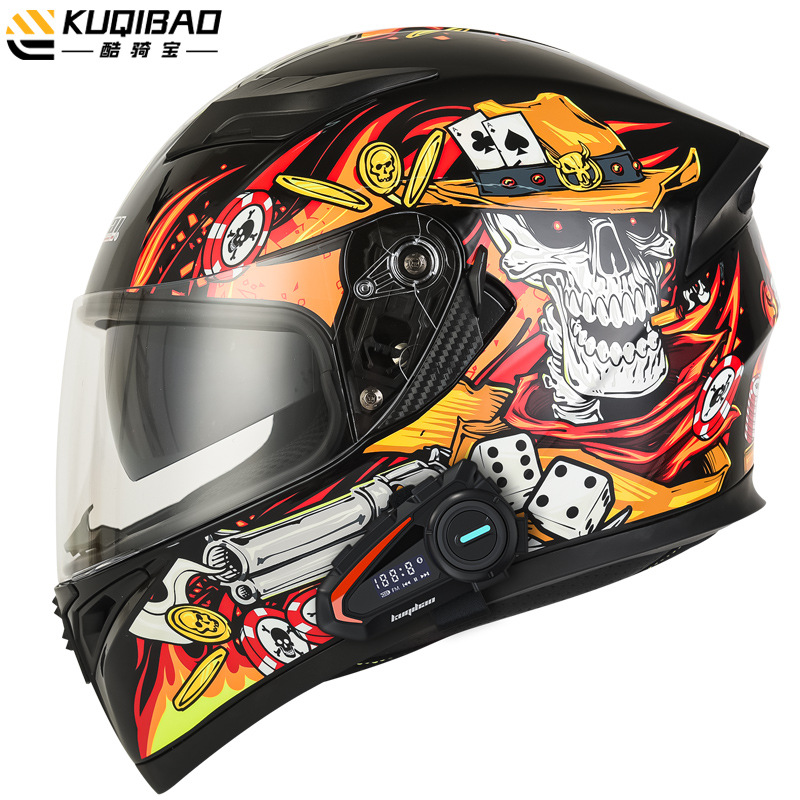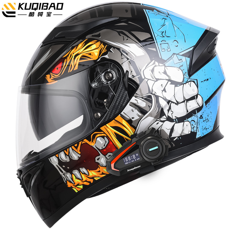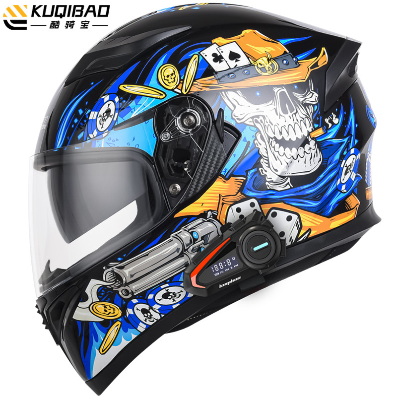 쿨 라이딩 보물 오토바이 블루투스 헬멧 오토바이 풀 헬멧 더블 렌즈 전기 사계절 여름 안전 그레이 3C 인증스토어 가기