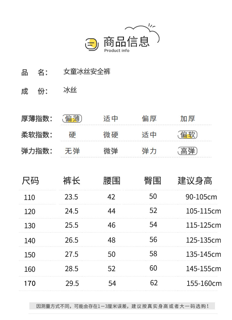 여아 안전 바지 여름 얇은 얼음 실크 어린이 안티 러닝 스커트 보험 바지 어린 소녀 큰 3 점 속옷