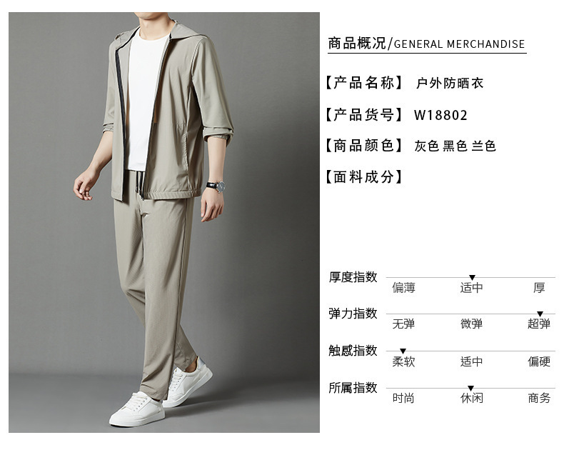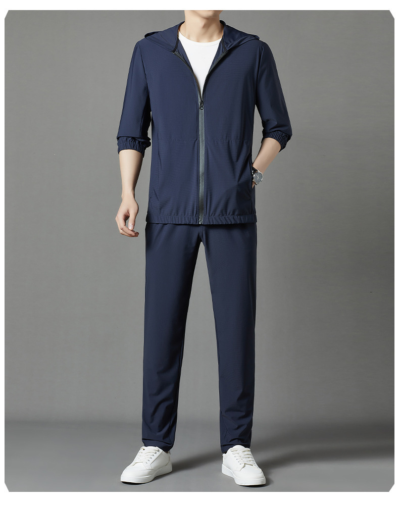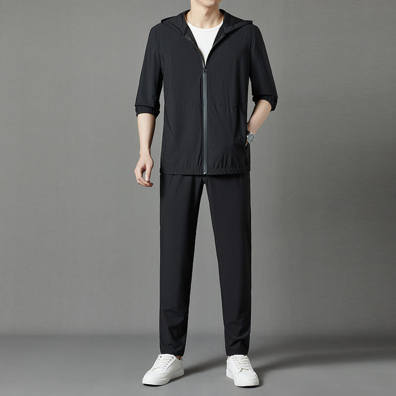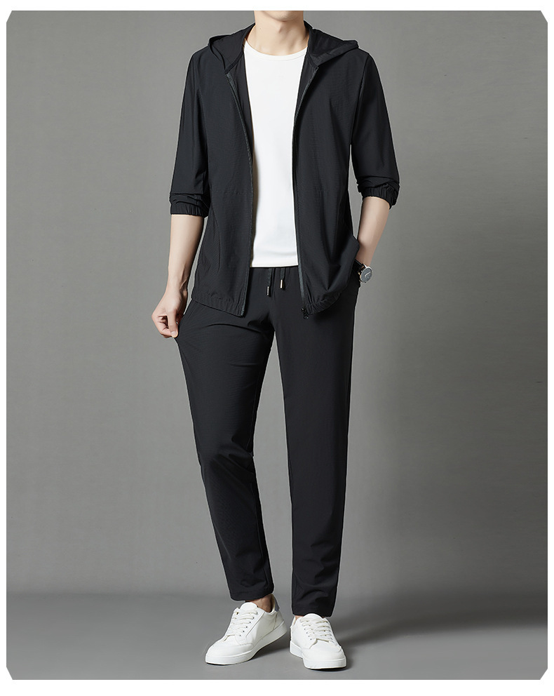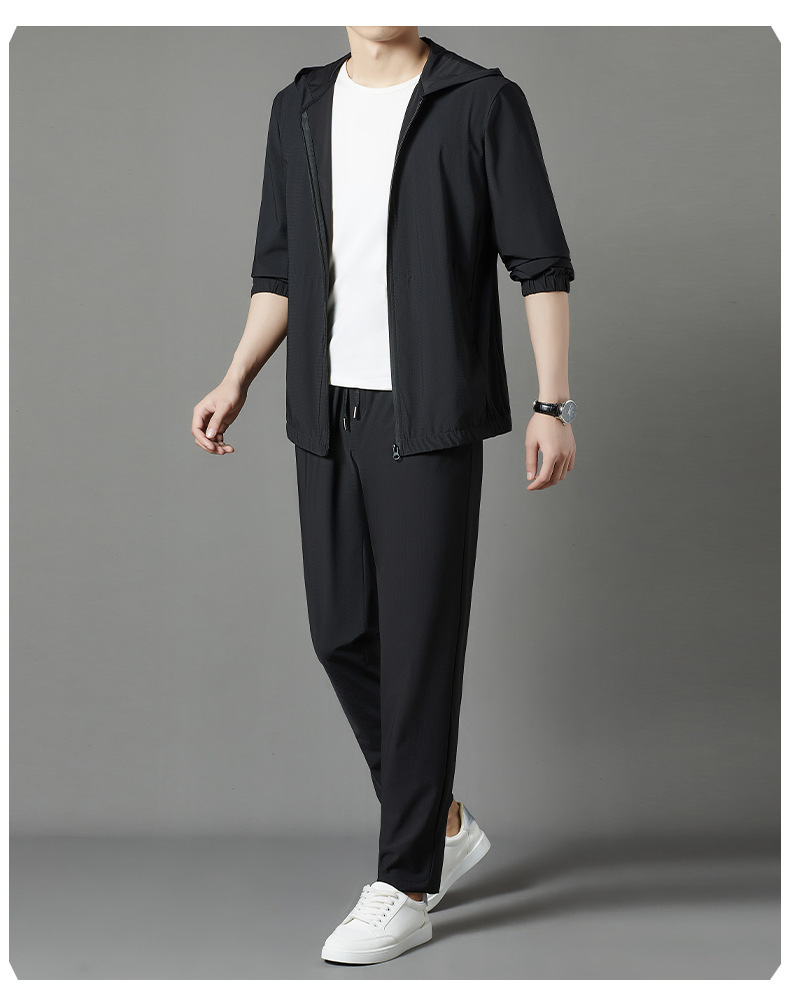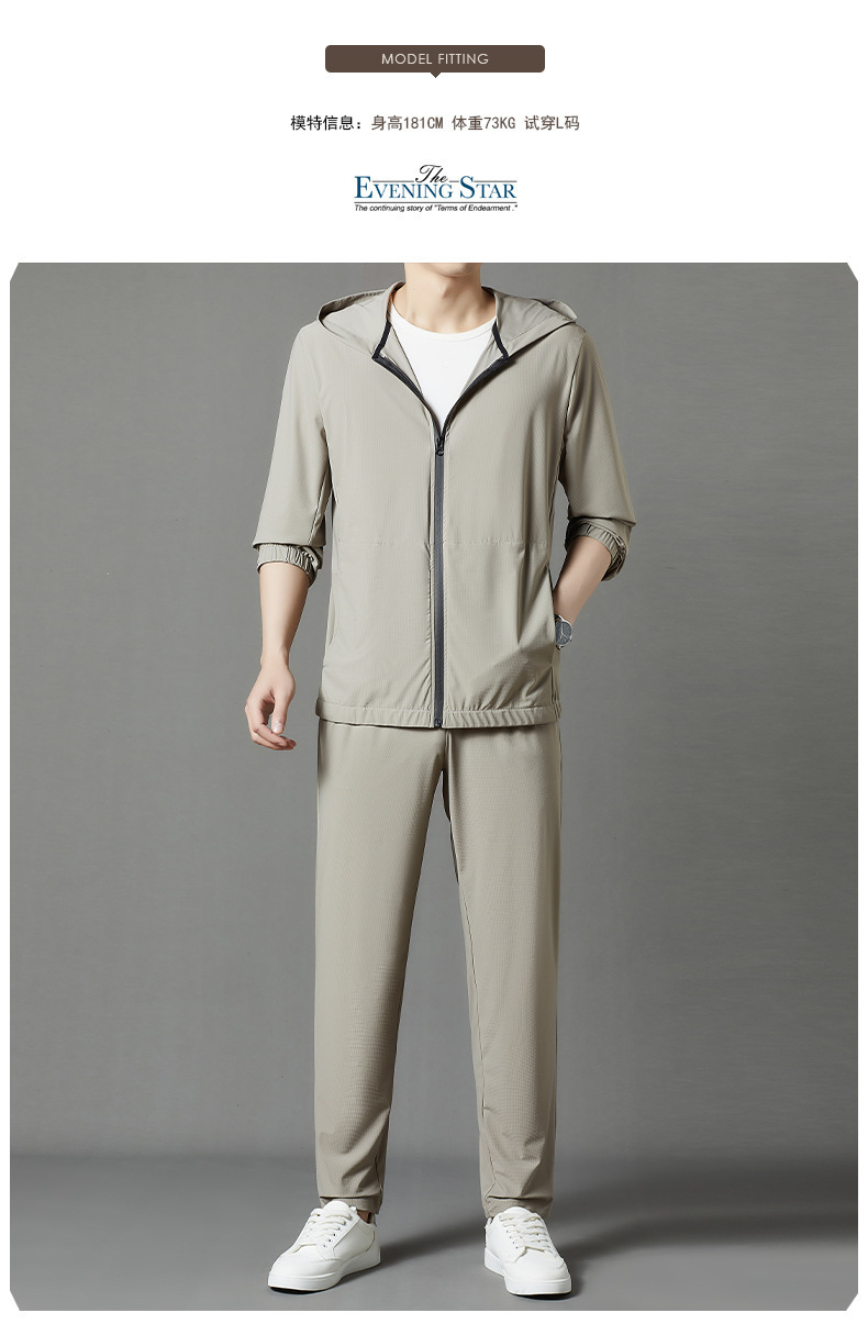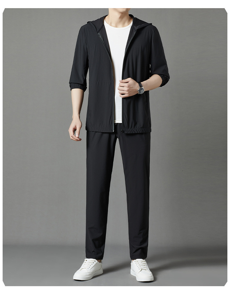 跨境韩版男款防晒服套装2023年夏季新款时尚休闲连帽薄款男士外套