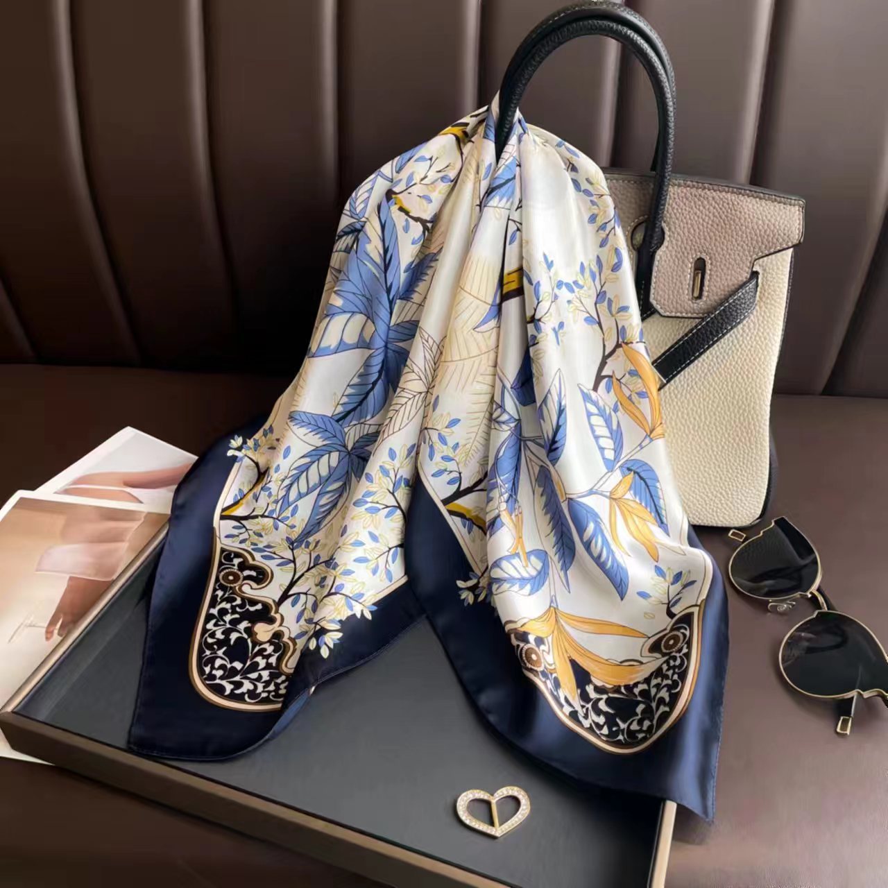 한국 스타일 심플 스타일 커피 그린 모조 실크 70 작은 사각형 스카프 2023 봄 슈퍼 새로운 패션 장식 기하학적 실크 스카프
