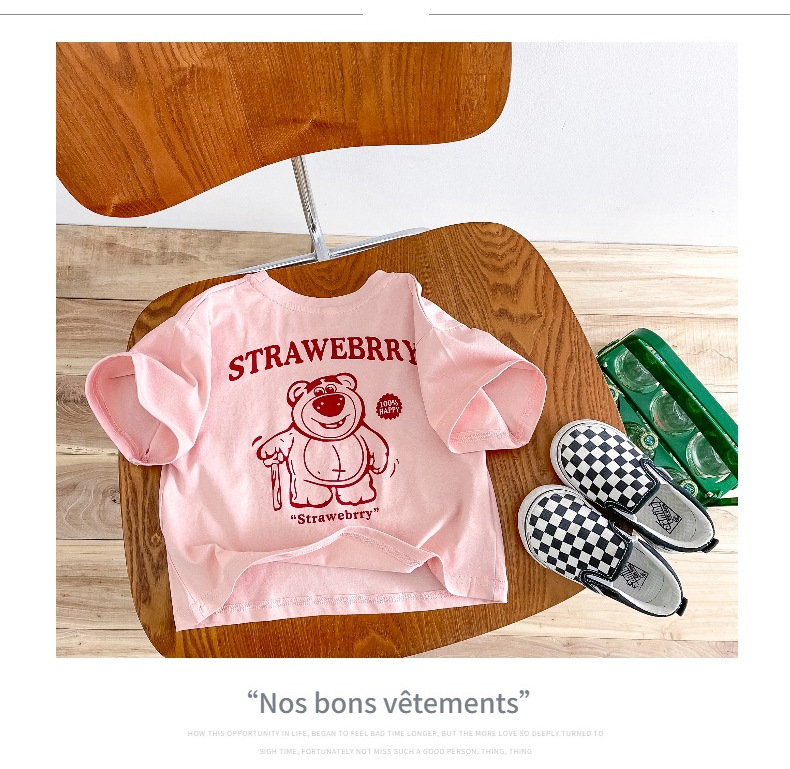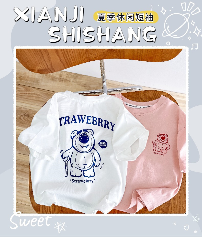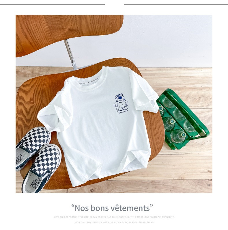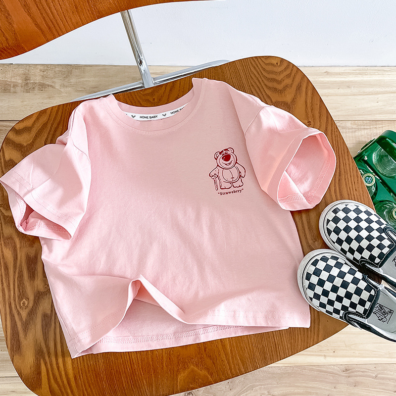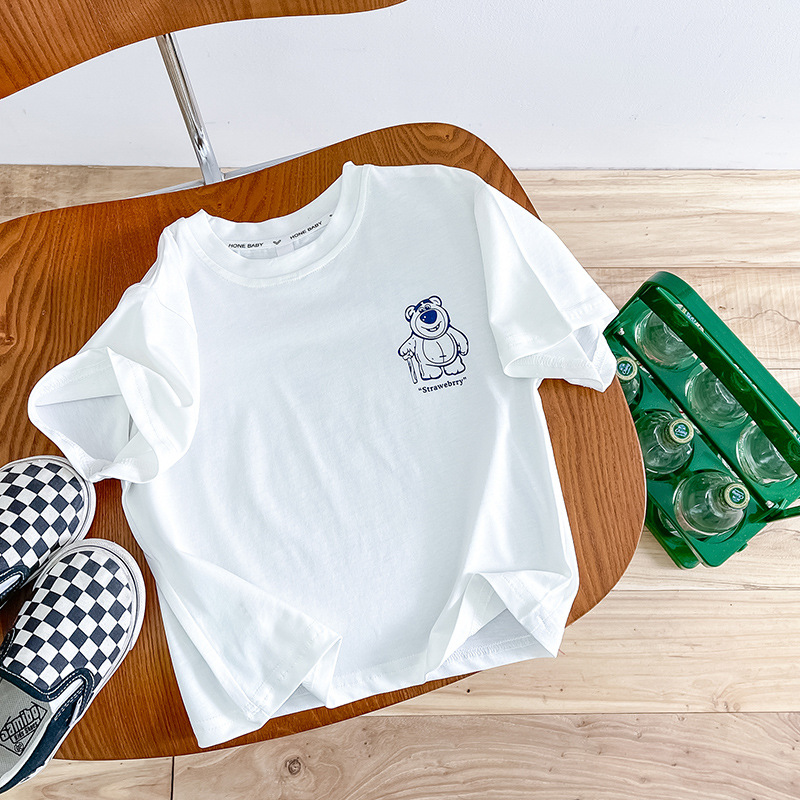 한국 아동복 곰면 반팔 티셔츠 소년 2024 년 새 여름 어린이 티셔츠 어린이 여름 패션 티셔츠