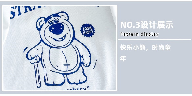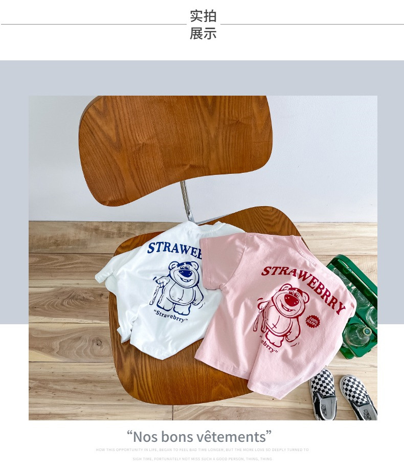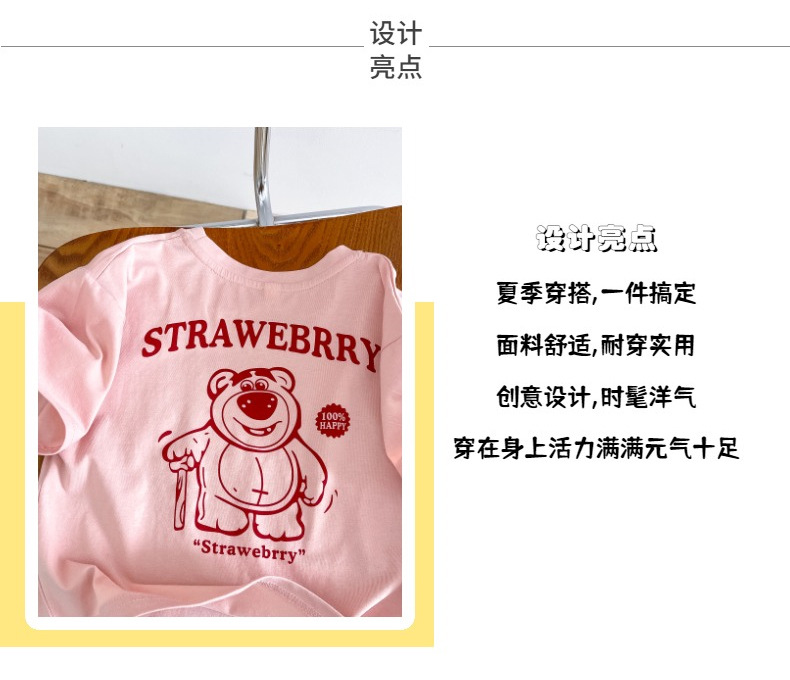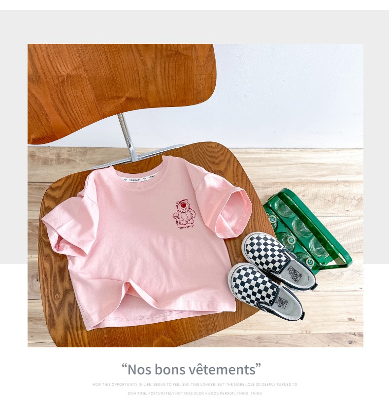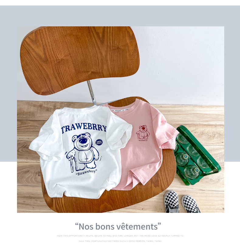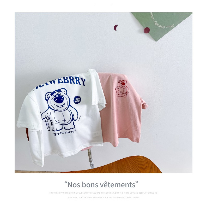 한국 아동복 곰면 반팔 티셔츠 소년 2024 년 새 여름 어린이 티셔츠 어린이 여름 패션 티셔츠