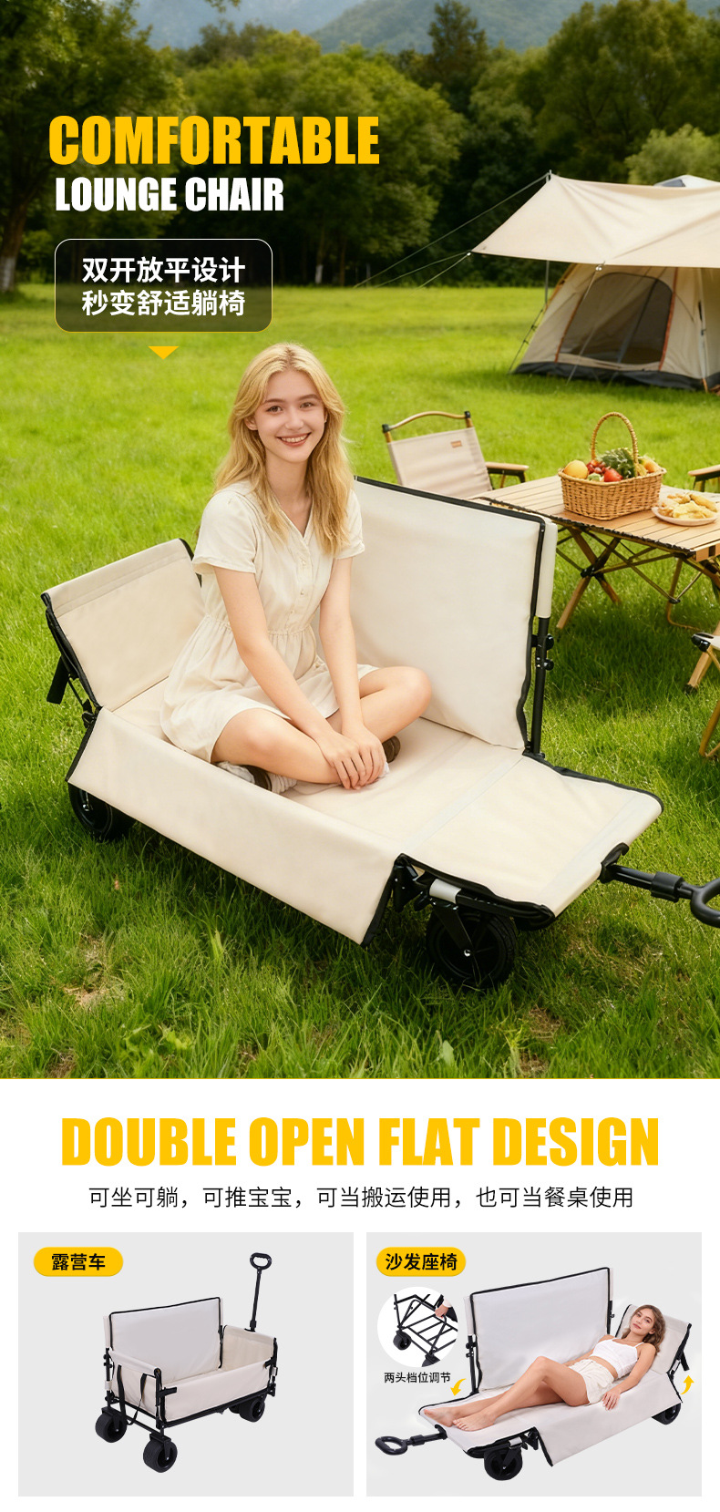 캠핑카, 야외 판매대, 접이식 캠핑 소파 카트, 앉을 수 있는 휴대용 피크닉 및 식료품 쇼핑 카트