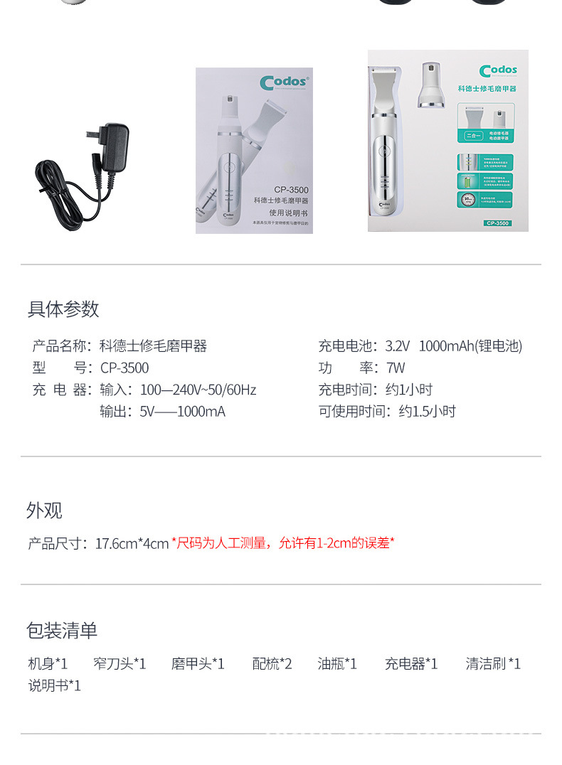 Kedez CP-3500 애완 동물 전기 헤어 클리퍼 면도 테디 강아지 네일 그라인더 2-in -1 헤어 트리머 무료 배송