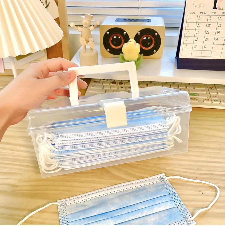 대형 휴대용 투명 마스크 보관함 기숙사 방진 마감 상자 휴대용 다기능 대용량 보관함