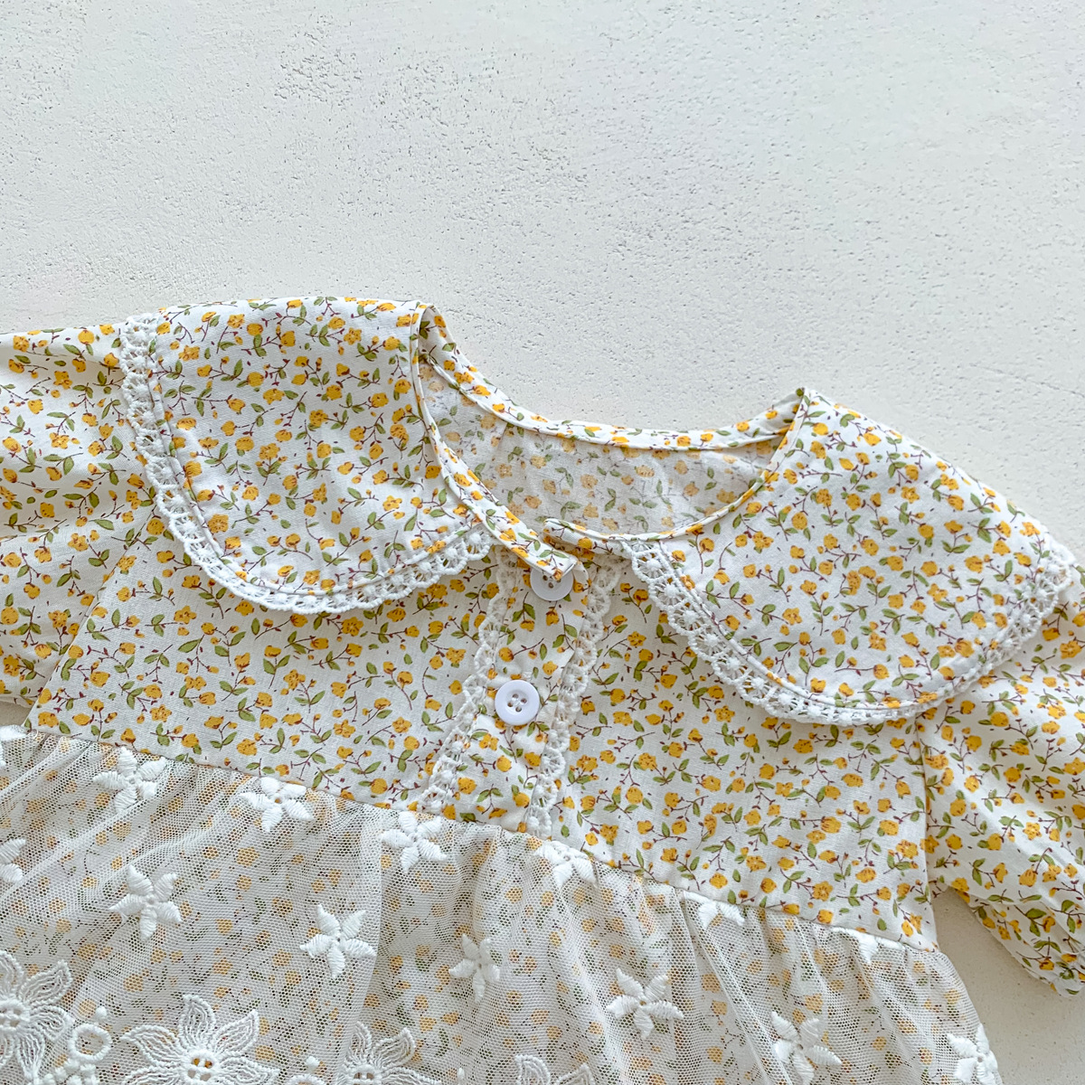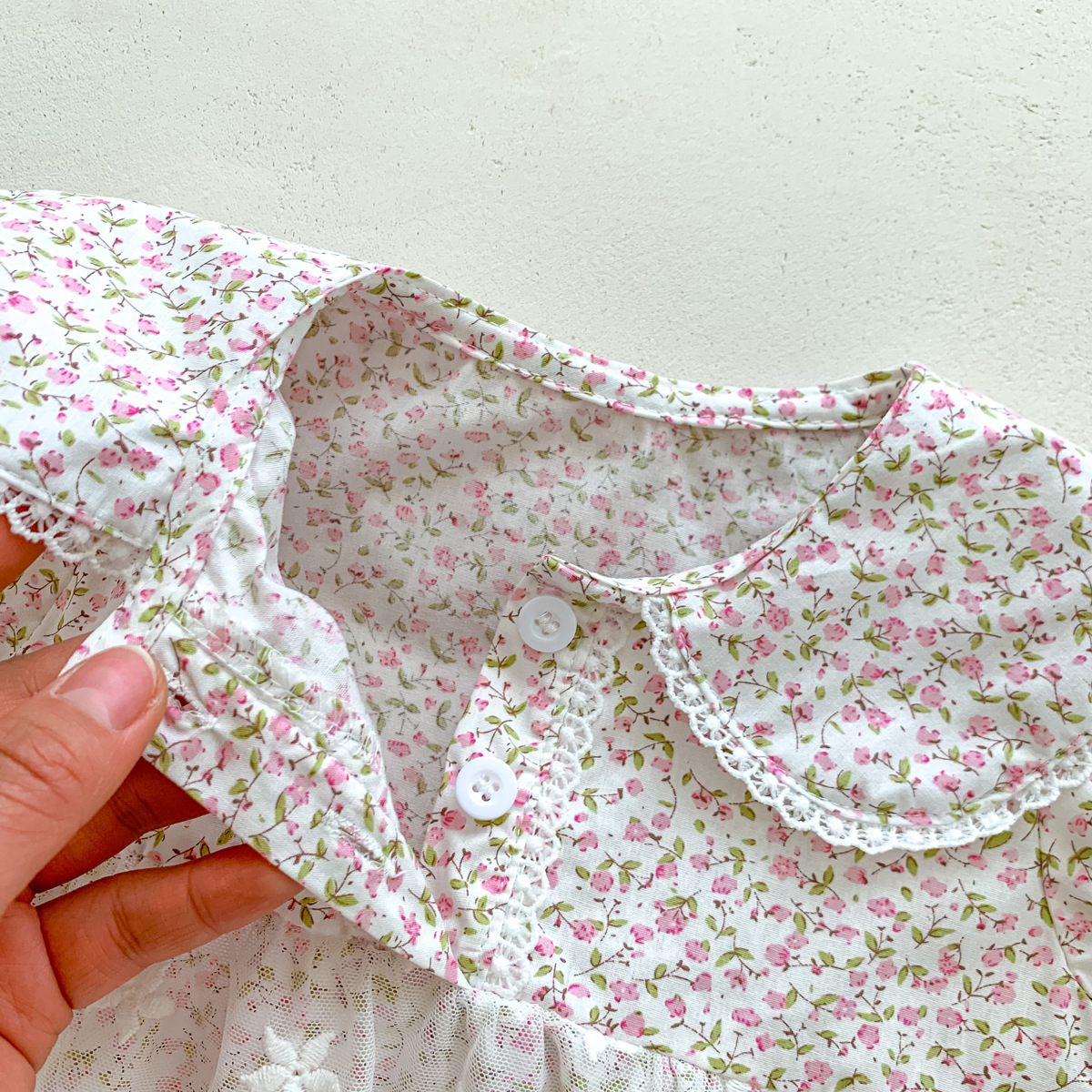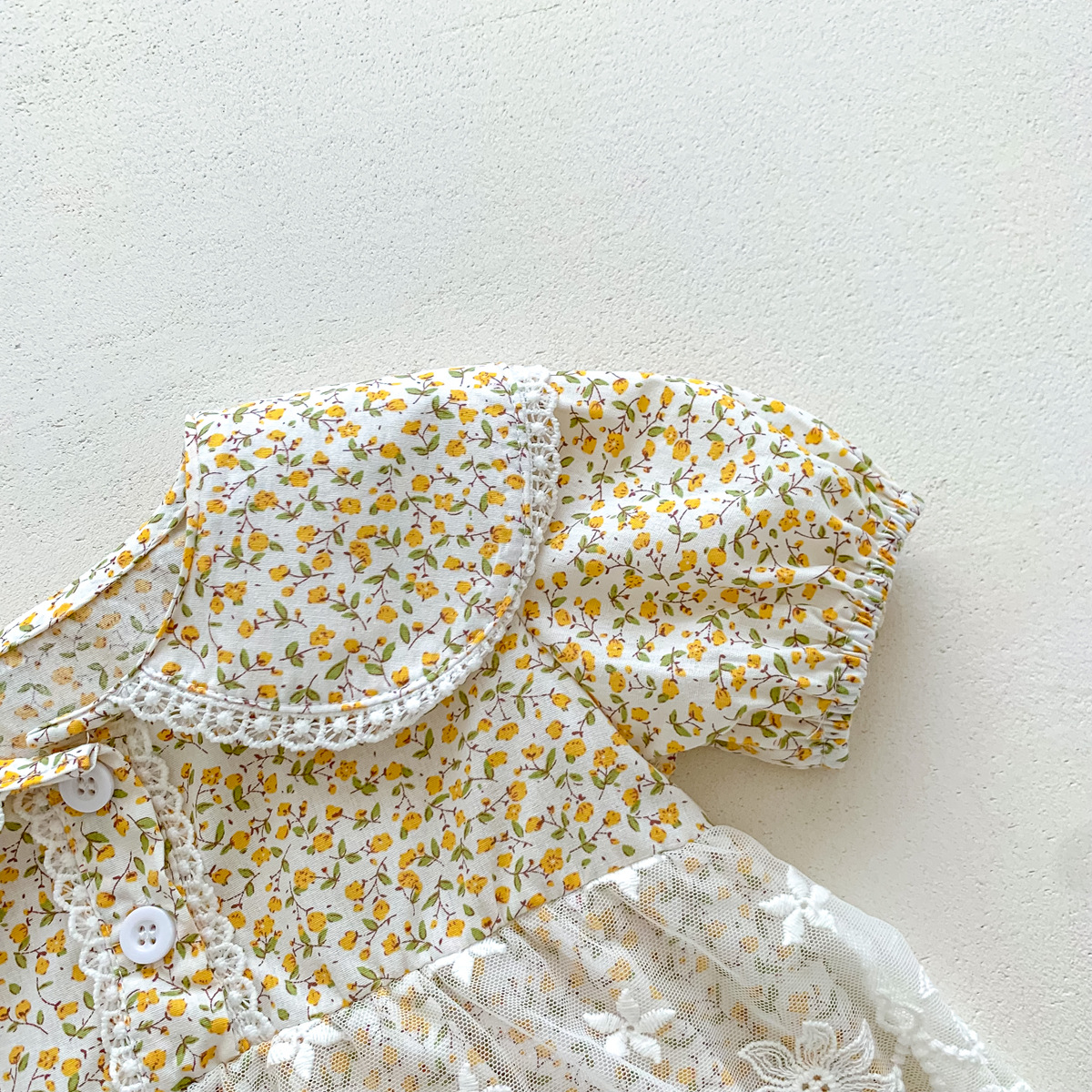 In 여름 아기 소녀 꽃 토끼 반팔 인형 칼라 가짜 투피스 백 뚱뚱한 옷 아기 레이스 집 밖 등산 의류