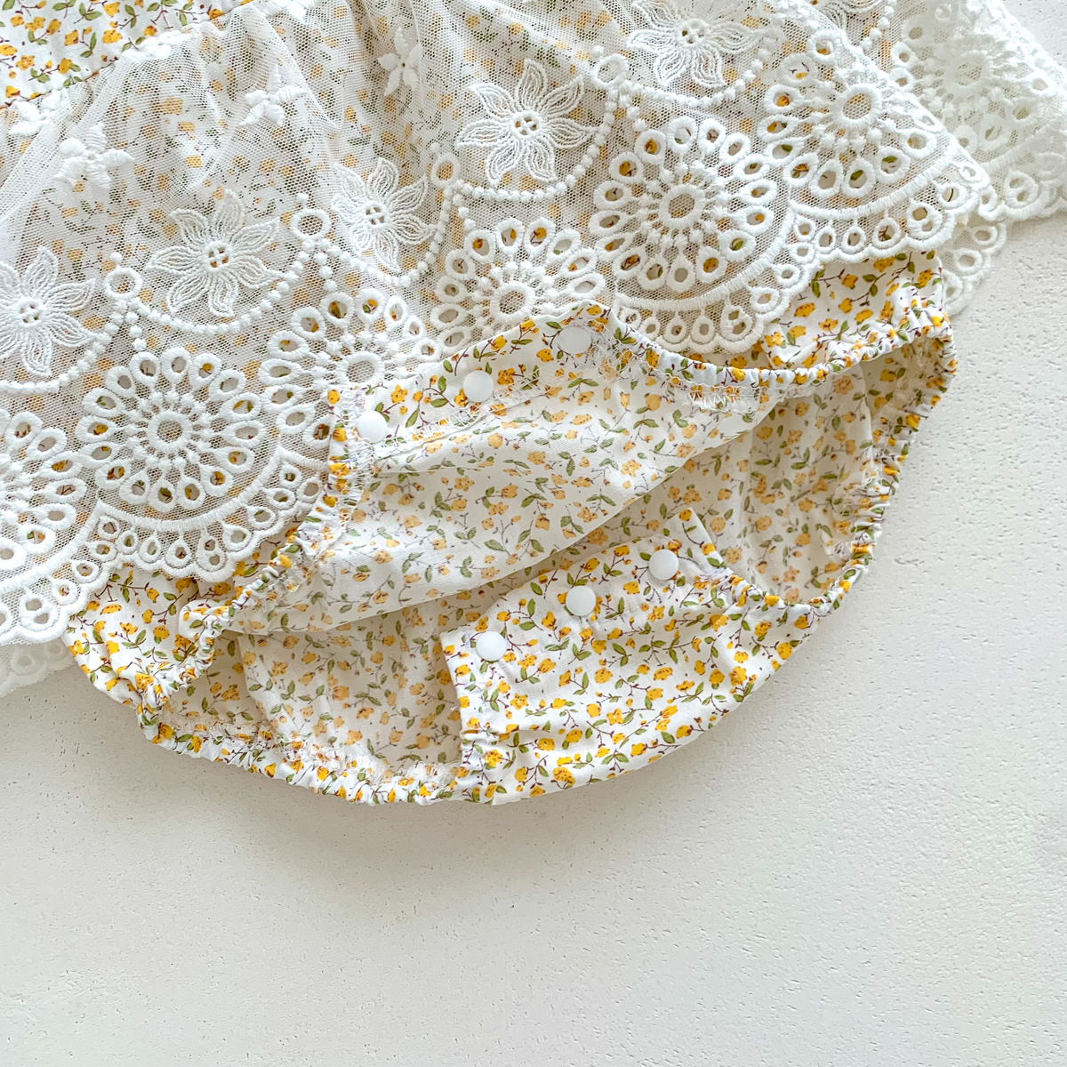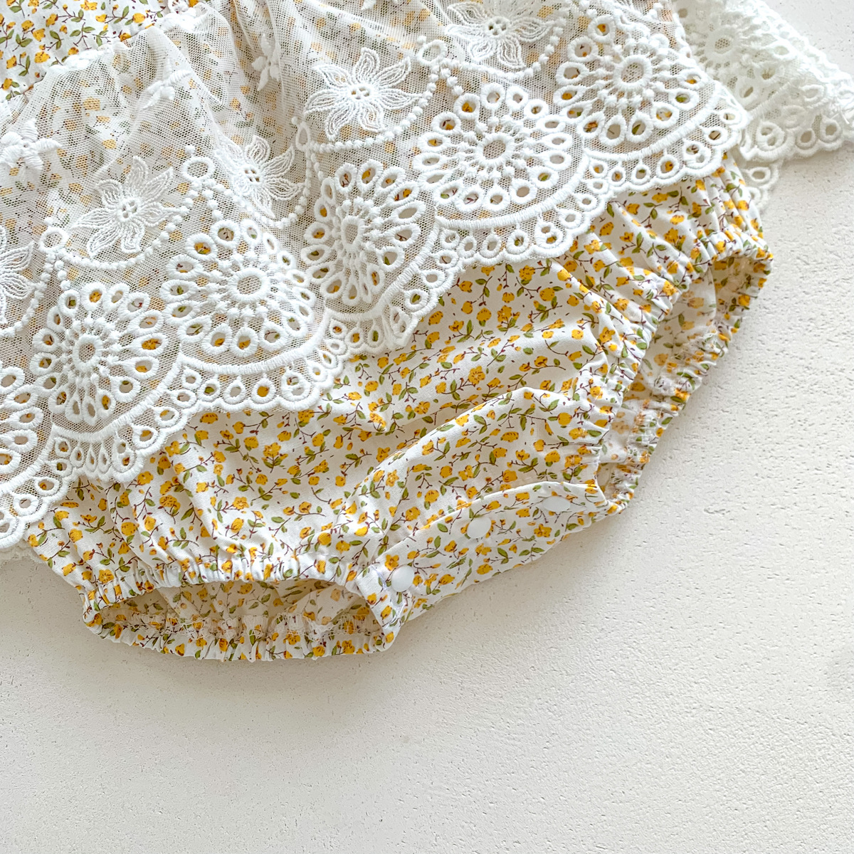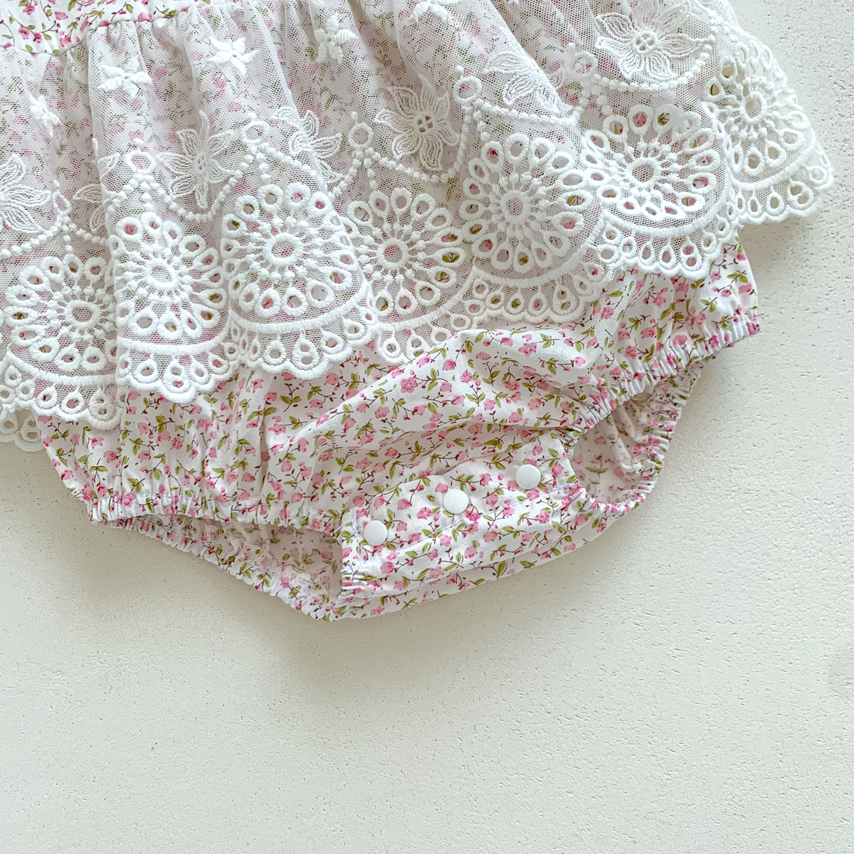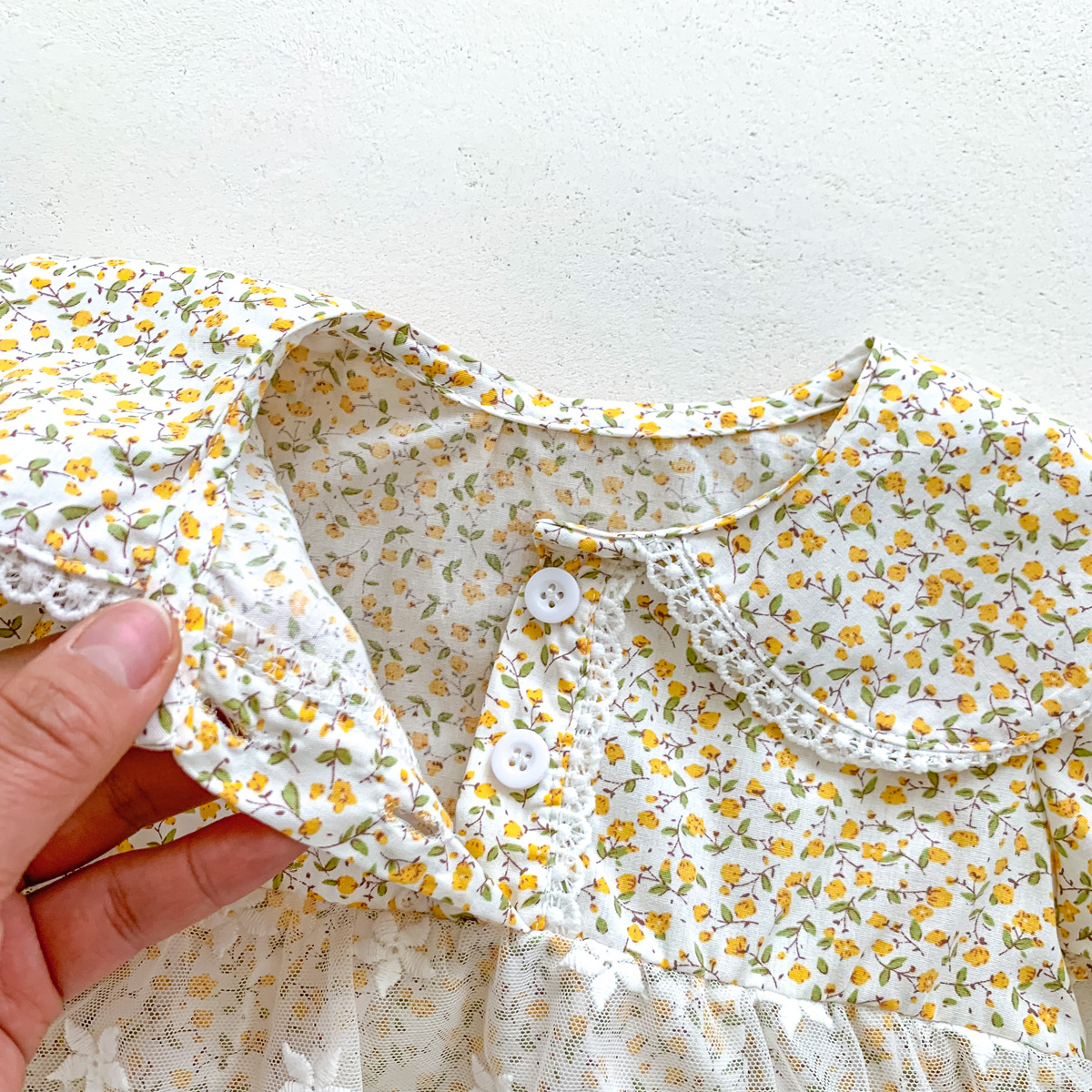 In 여름 아기 소녀 꽃 토끼 반팔 인형 칼라 가짜 투피스 백 뚱뚱한 옷 아기 레이스 집 밖 등산 의류