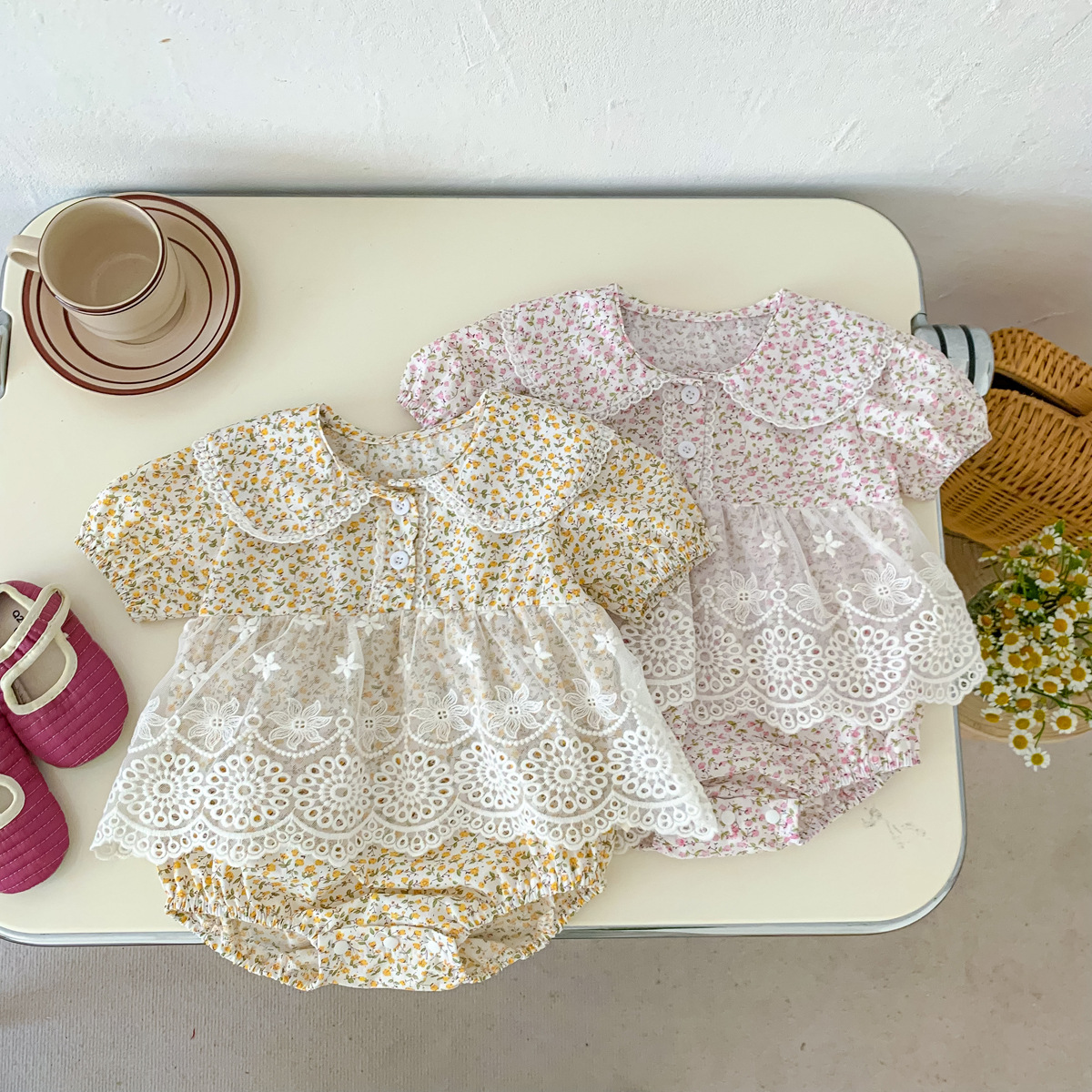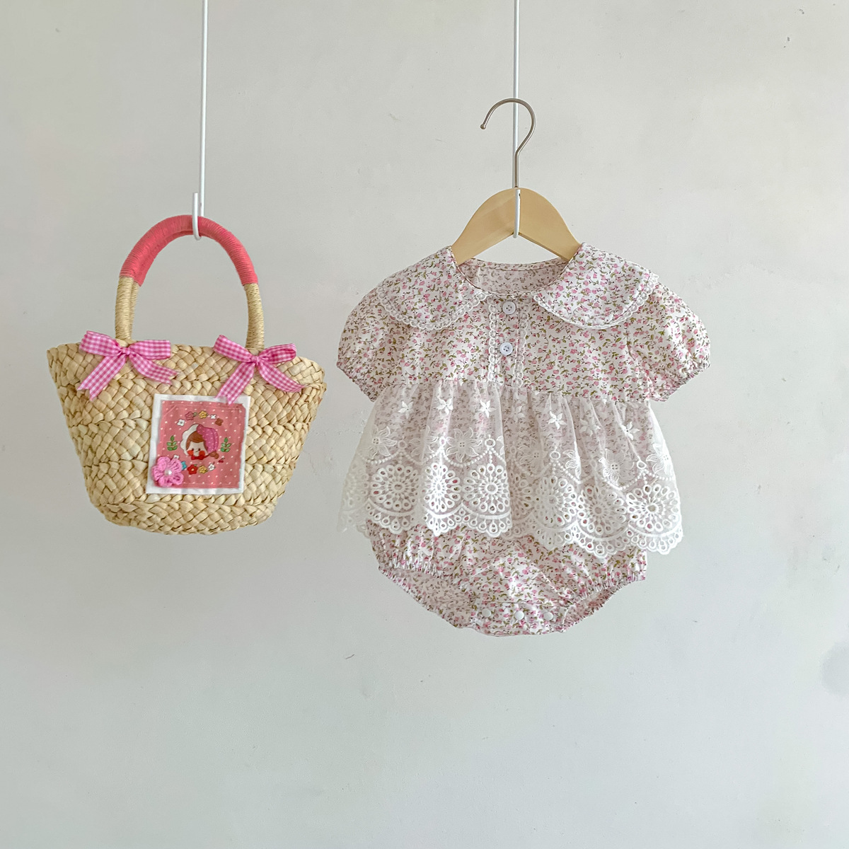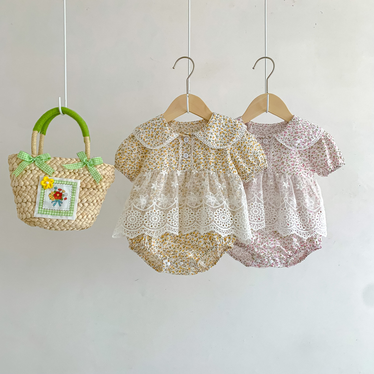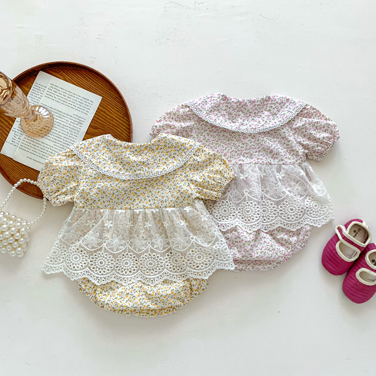 In 여름 아기 소녀 꽃 토끼 반팔 인형 칼라 가짜 투피스 백 뚱뚱한 옷 아기 레이스 집 밖 등산 의류스토어 가기