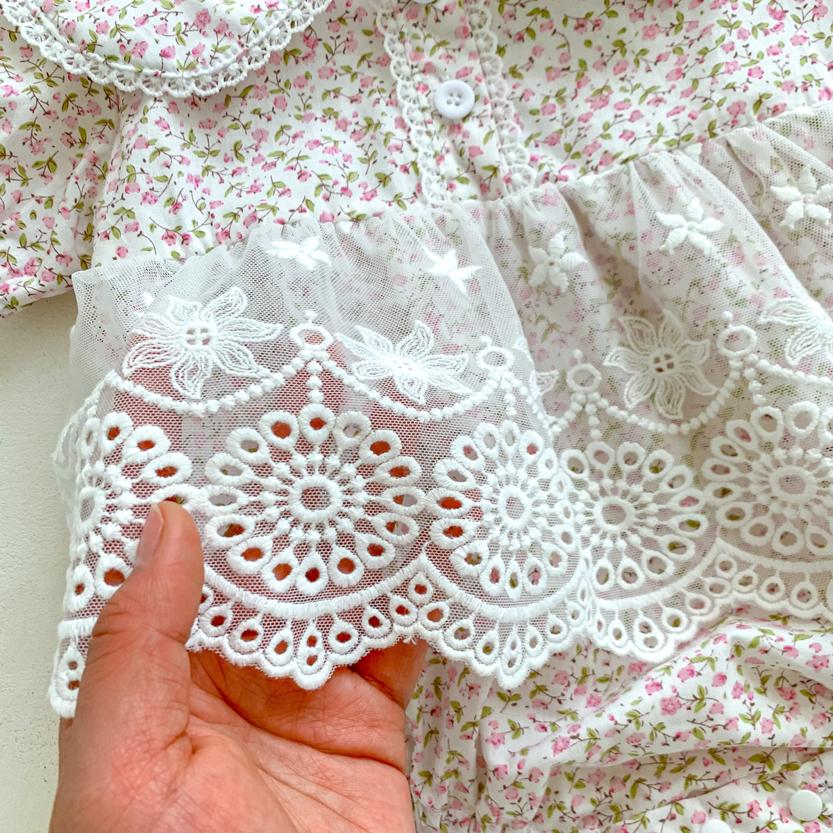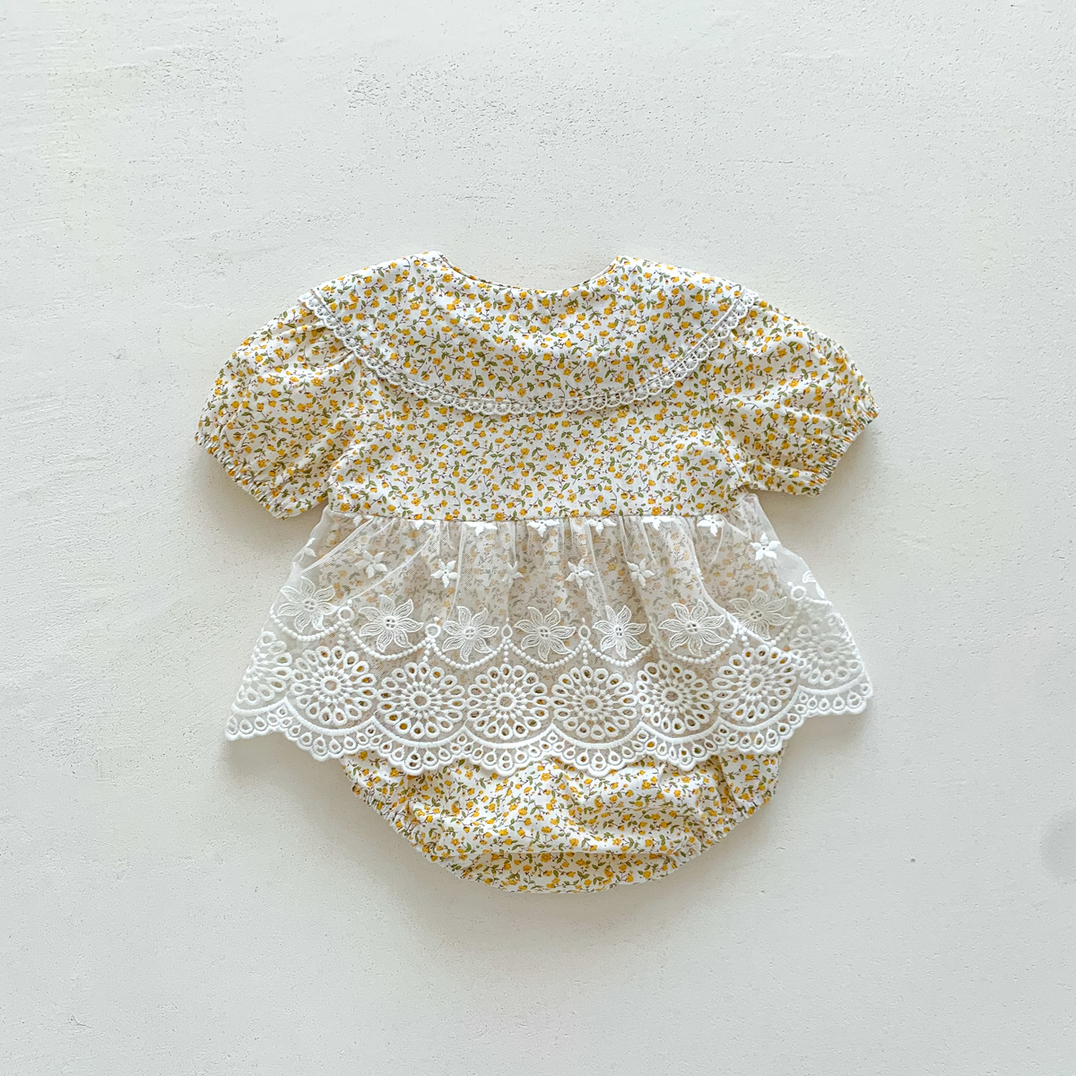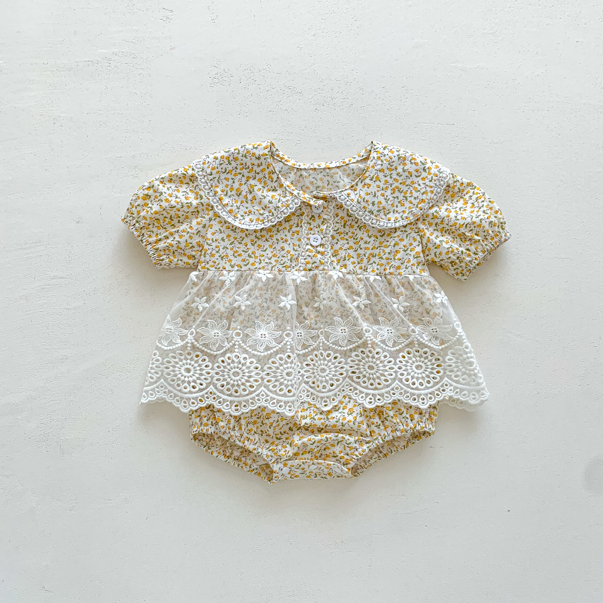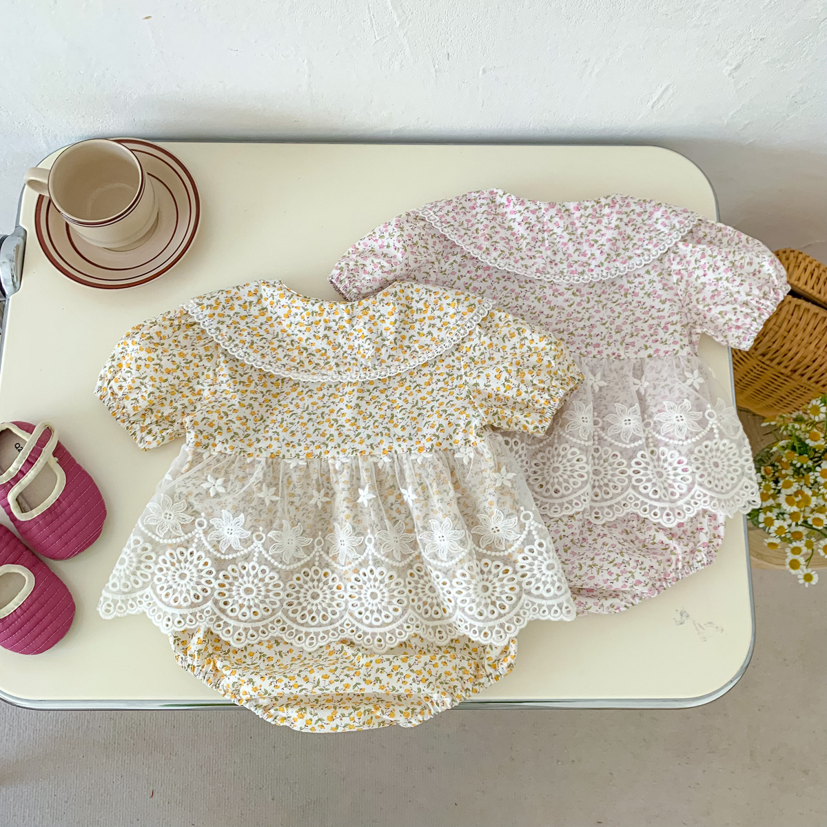 In 여름 아기 소녀 꽃 토끼 반팔 인형 칼라 가짜 투피스 백 뚱뚱한 옷 아기 레이스 집 밖 등산 의류스토어 가기