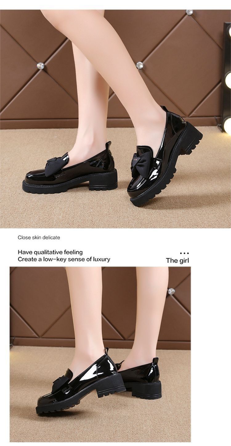 부드러운 가죽 단층 신발 여성용 두꺼운 밑창 로퍼 2023 새로운 여름 미드 힐 여성 신발 활 밝은 가죽 신발 여성용 쁘띠스토어 가기