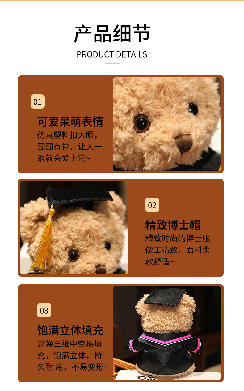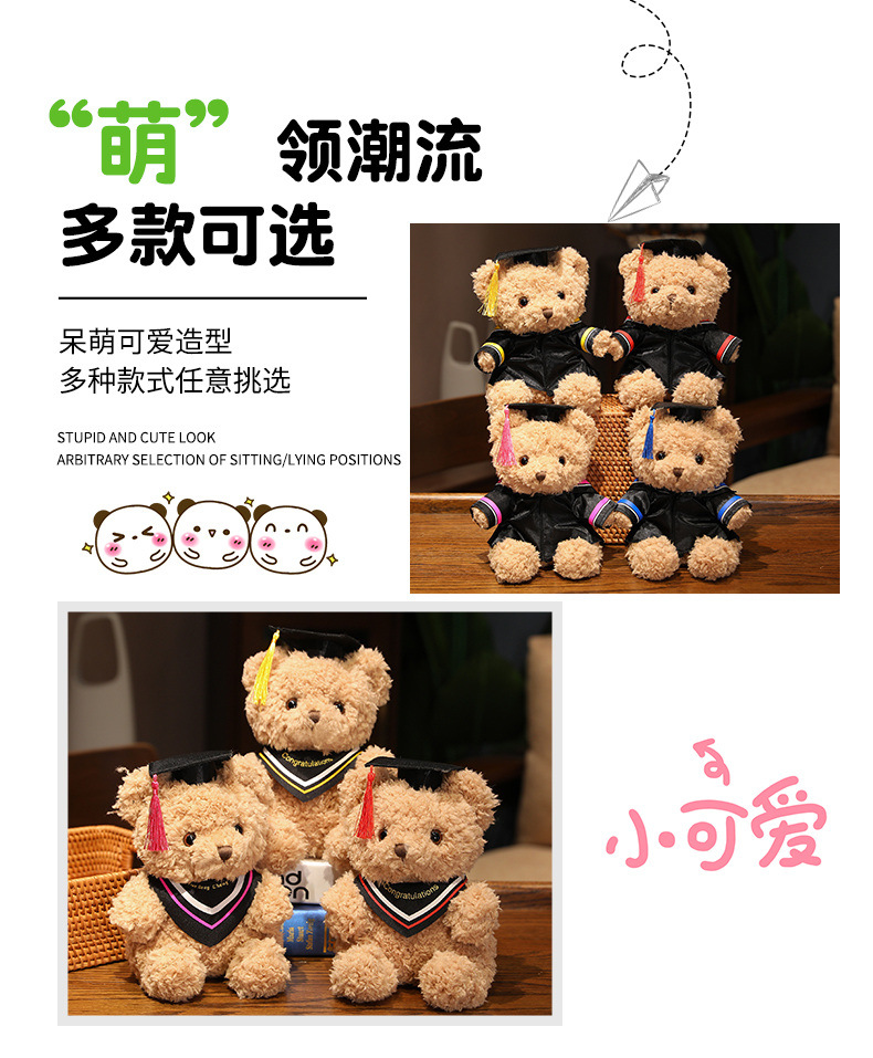 졸업 인형 대학 의사 모자 석사 세트 봉제 장난감 테디 의사 곰 잡기 기계 헝겊 인형 선물스토어 가기
