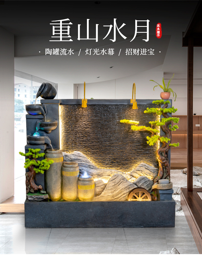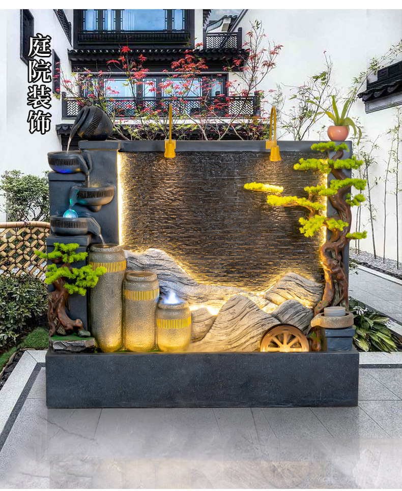 워터 커튼 벽 흐르는 물 스크린 회사 베란다 칸막이 옥내 및 옥외 안뜰 물고기 연못 바위 폭포 분수 풍경 장식품스토어 가기