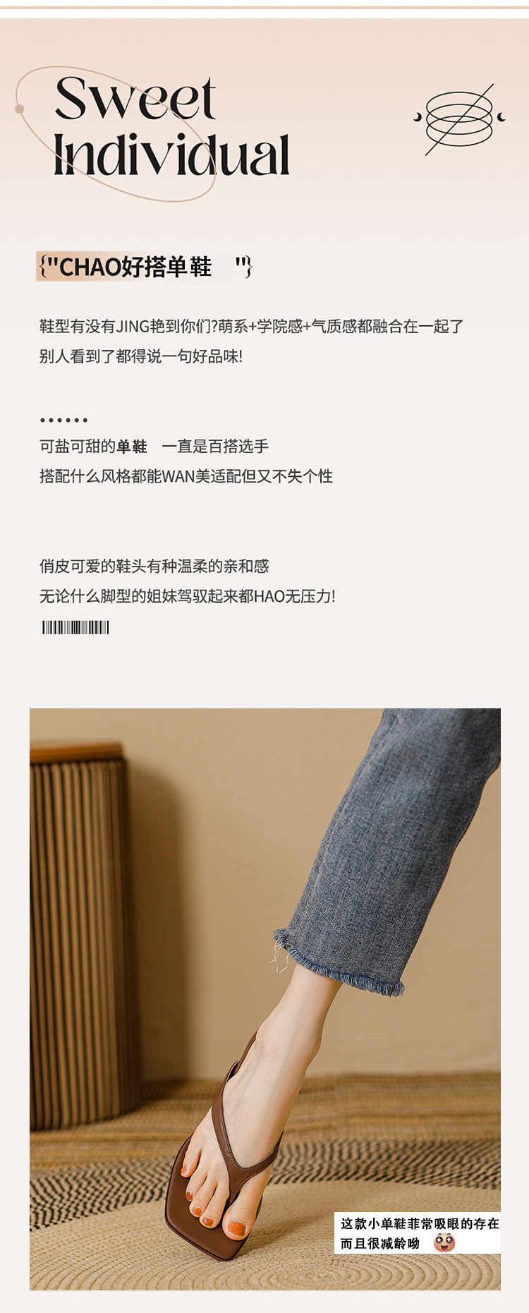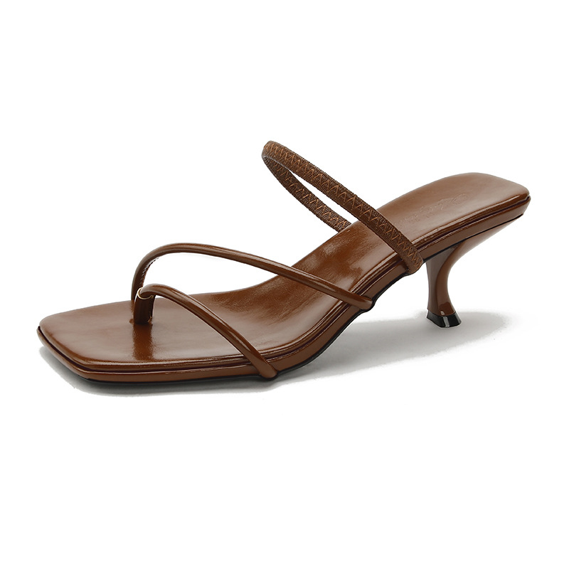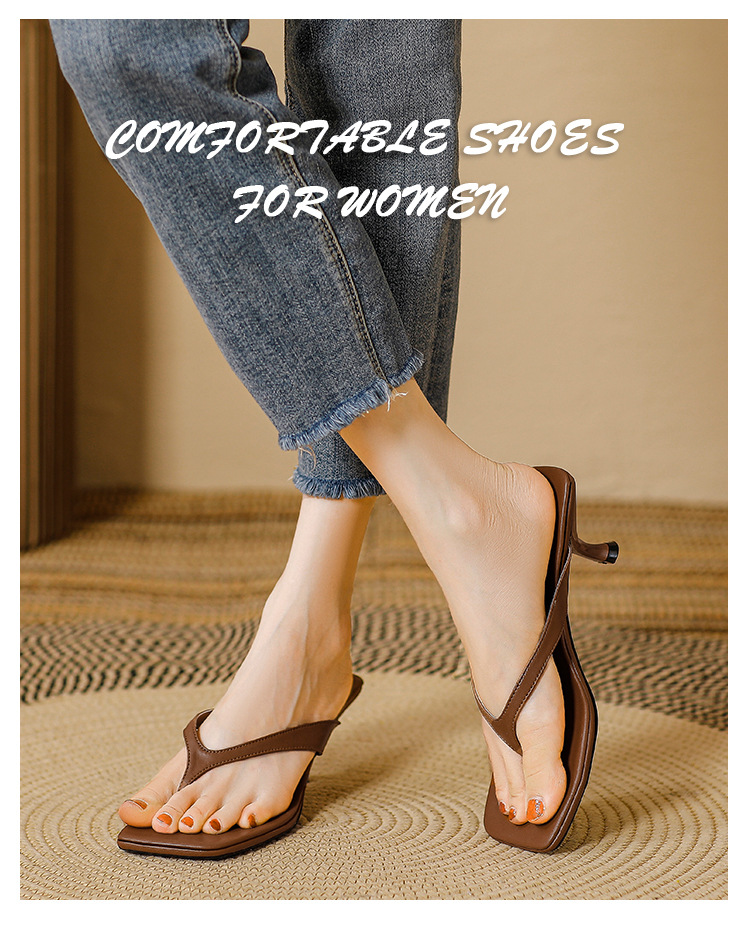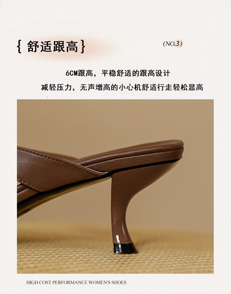 2025 프렌치 스타일 스퀘어토 키튼힐 샌들, 여성용 대형 사이즈 하이힐 슬리퍼, 패셔너블한 외출용 유럽 및 미국 스타일스토어 가기