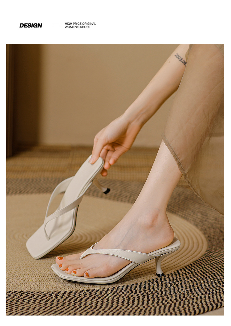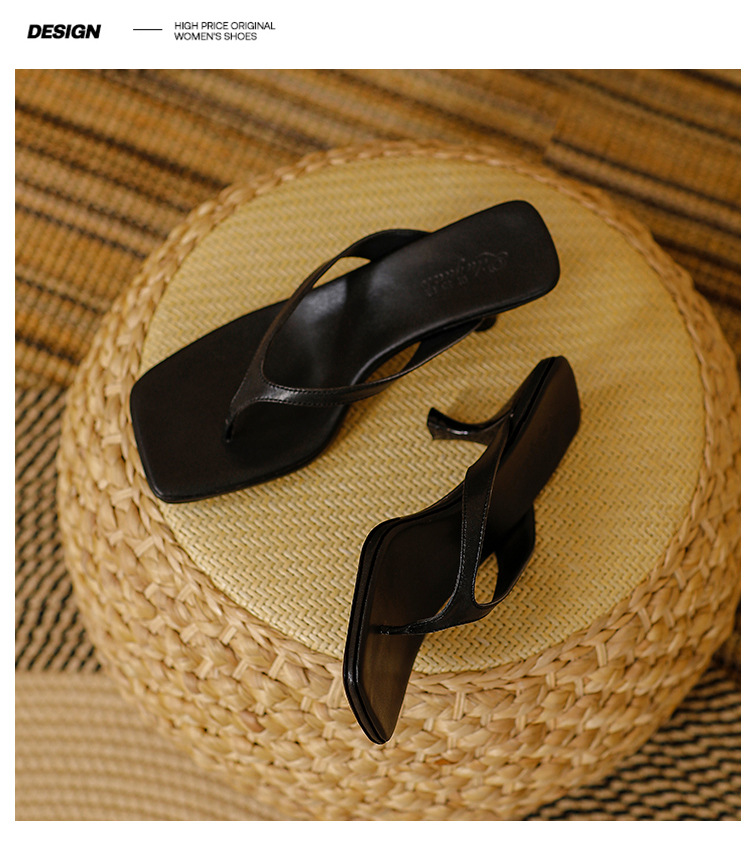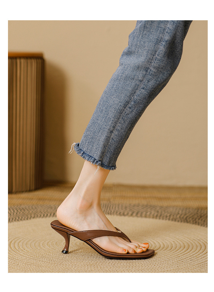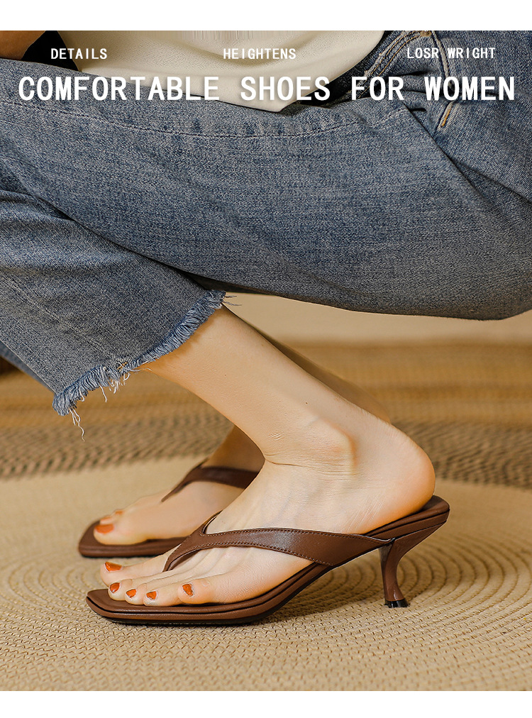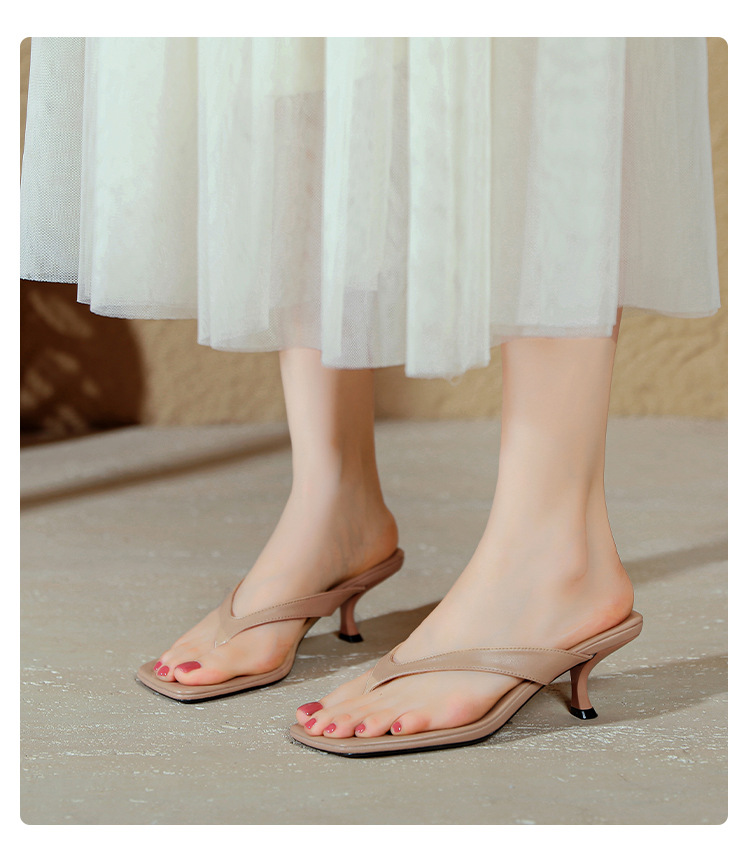 2025 프렌치 스타일 스퀘어토 키튼힐 샌들, 여성용 대형 사이즈 하이힐 슬리퍼, 패셔너블한 외출용 유럽 및 미국 스타일