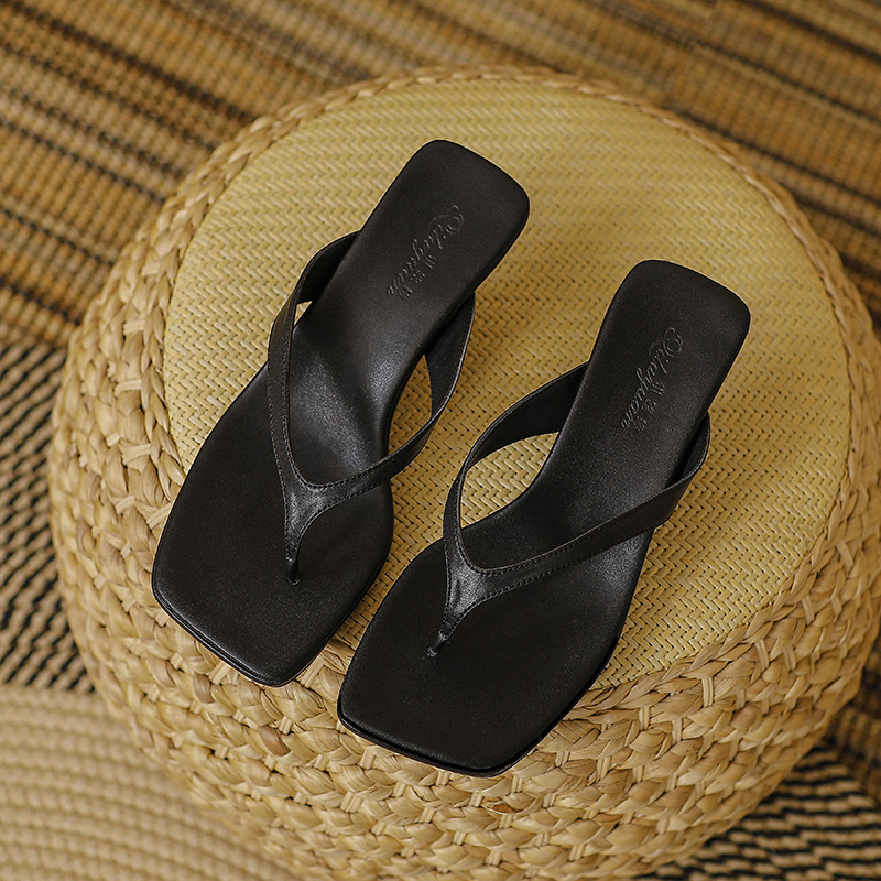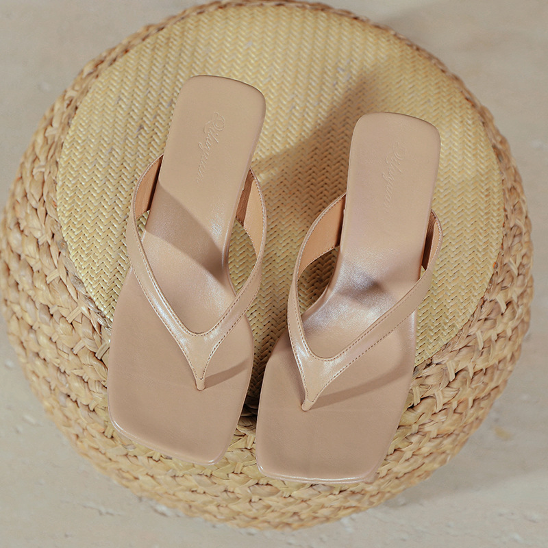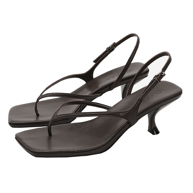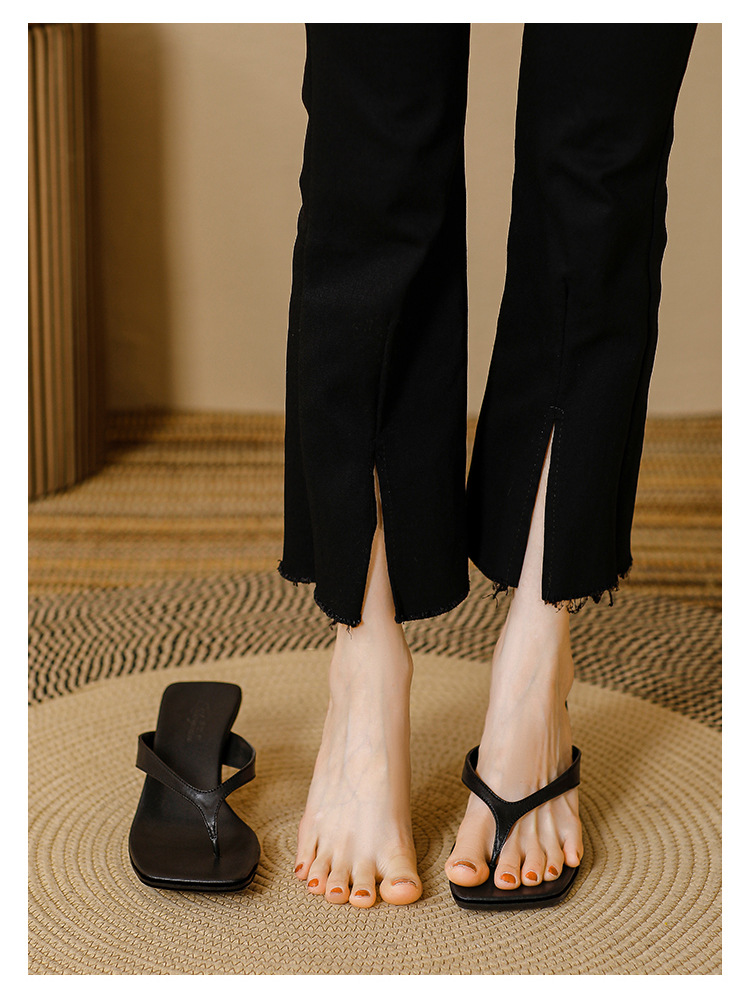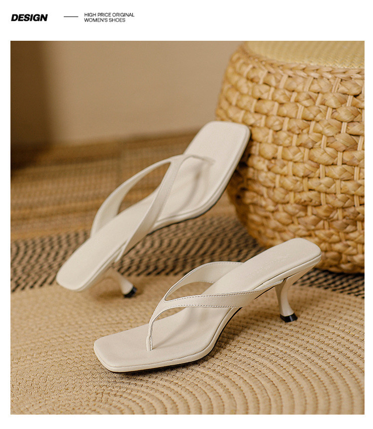 2025 프렌치 스타일 스퀘어토 키튼힐 샌들, 여성용 대형 사이즈 하이힐 슬리퍼, 패셔너블한 외출용 유럽 및 미국 스타일