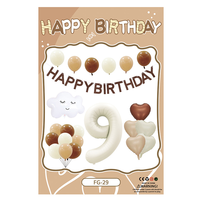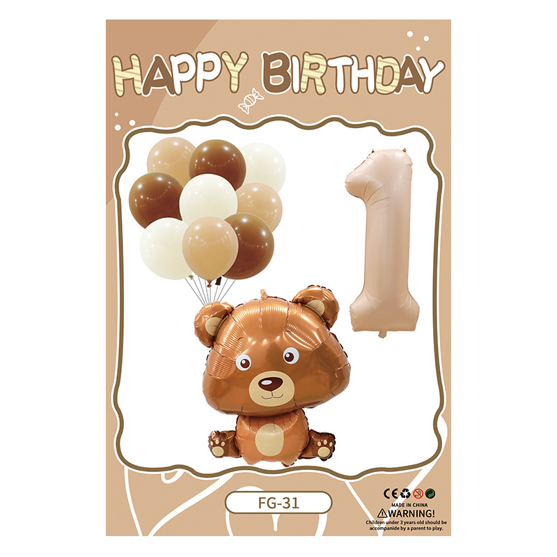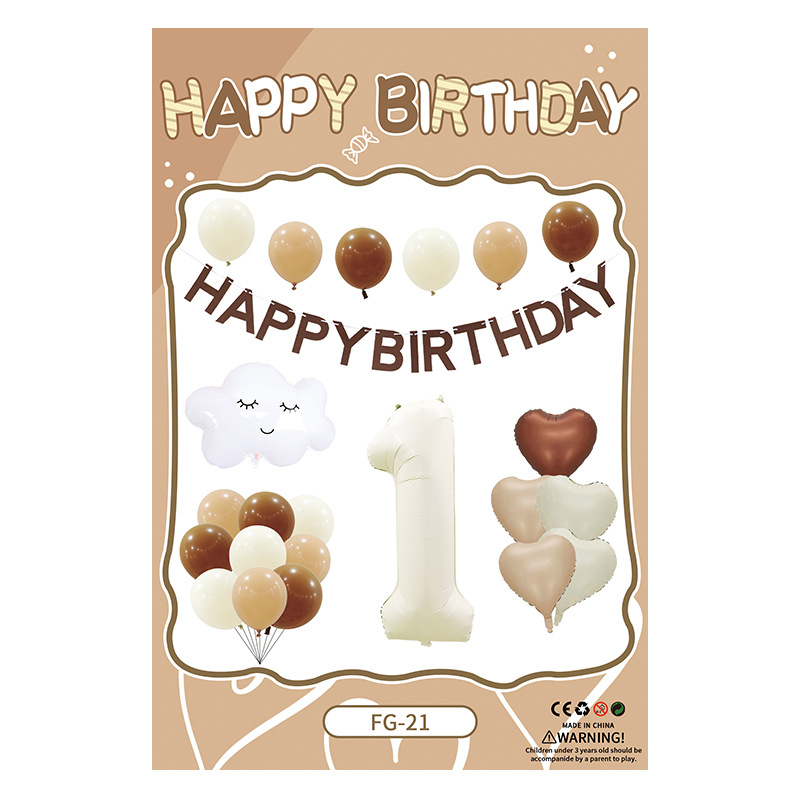 에 빈티지 크림 진한 베이지 알루미늄 필름 디지털 생일 세트 만화 동물 조합 백 카드 단일 풍선 도매