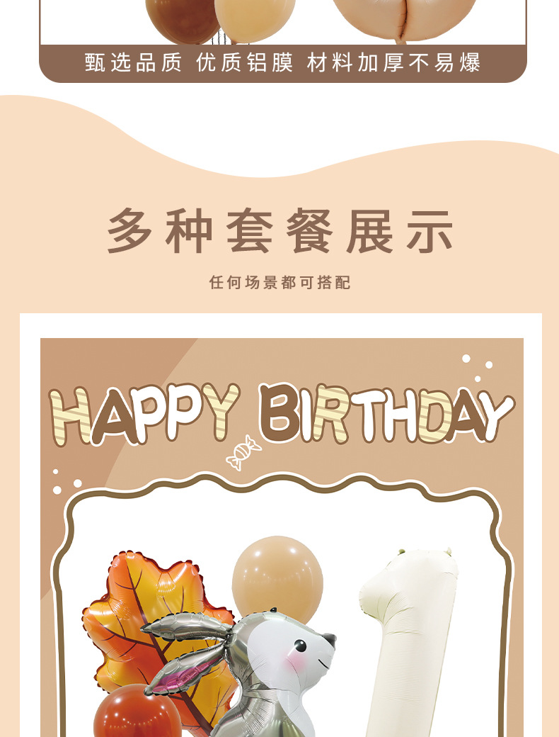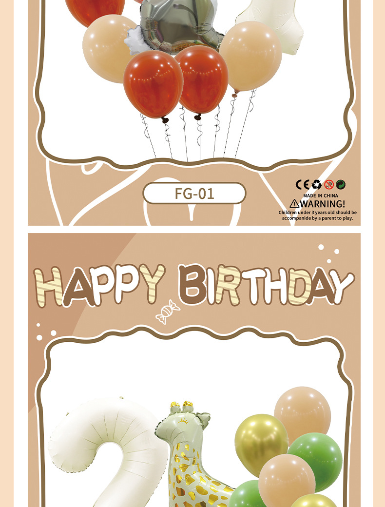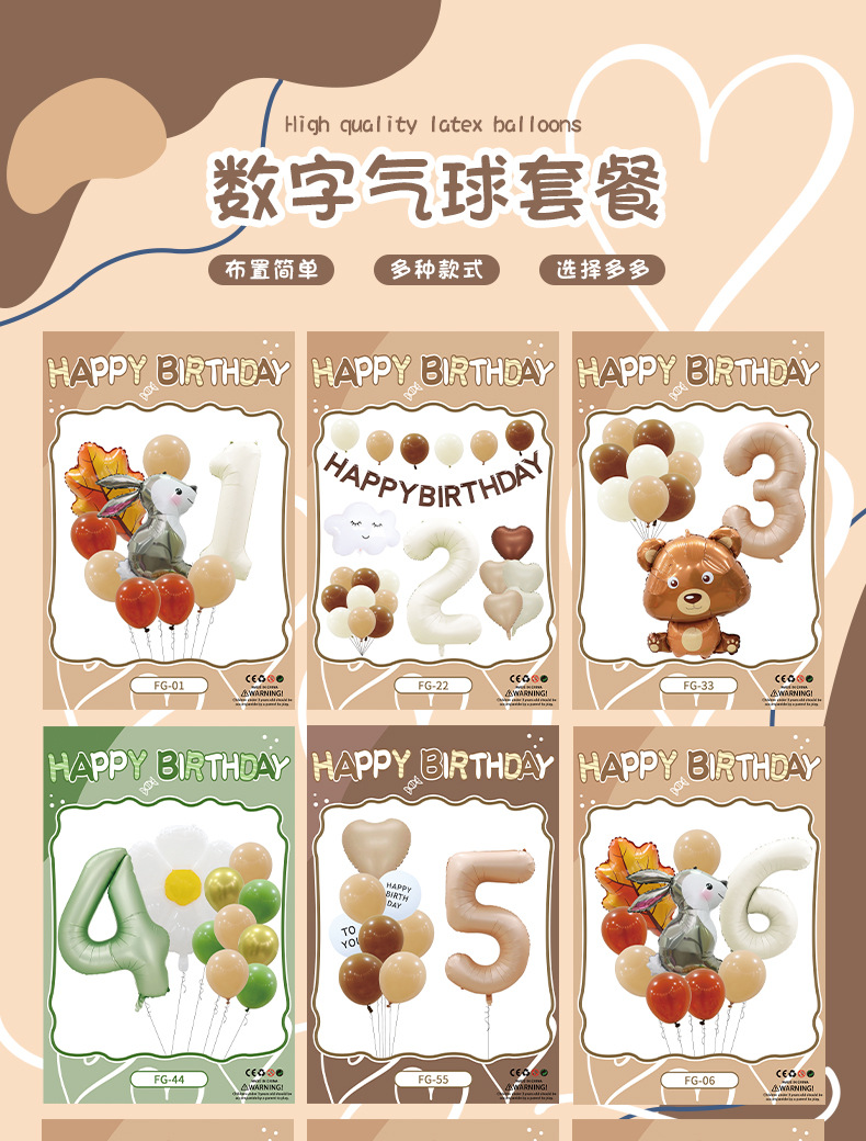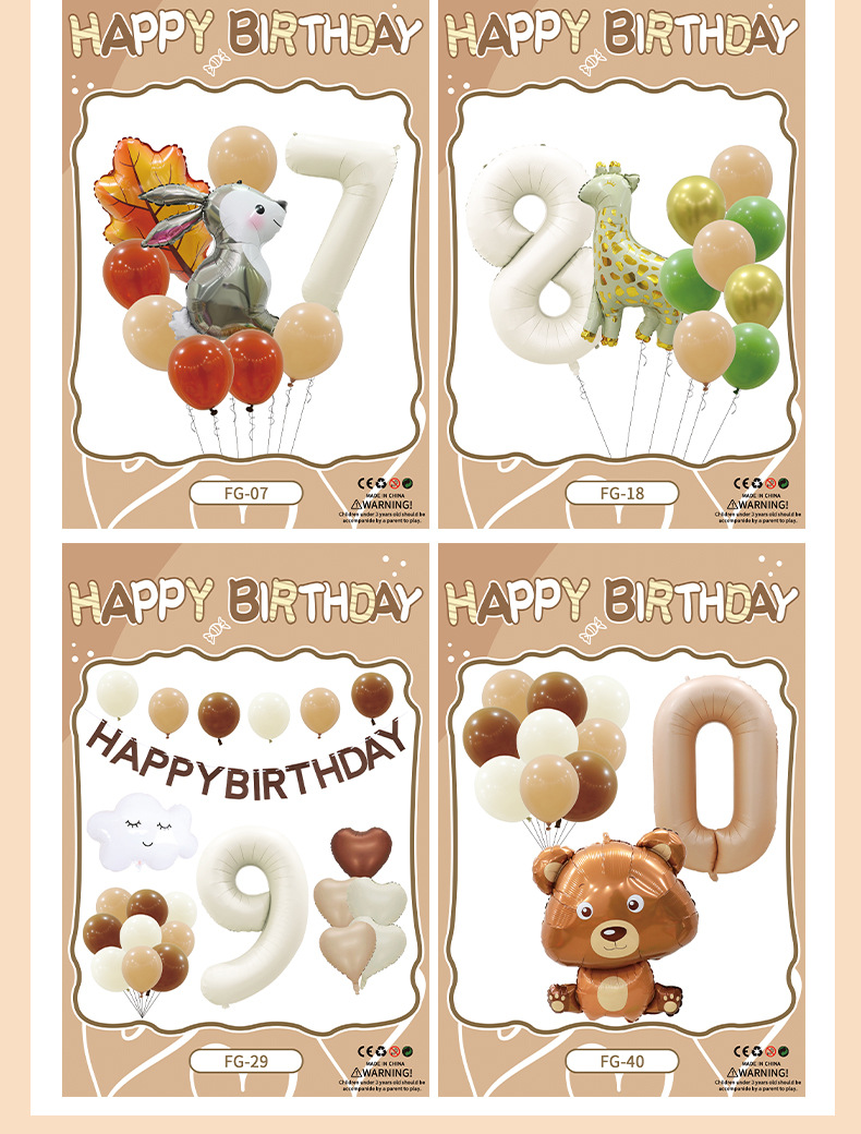 에 빈티지 크림 진한 베이지 알루미늄 필름 디지털 생일 세트 만화 동물 조합 백 카드 단일 풍선 도매스토어 가기