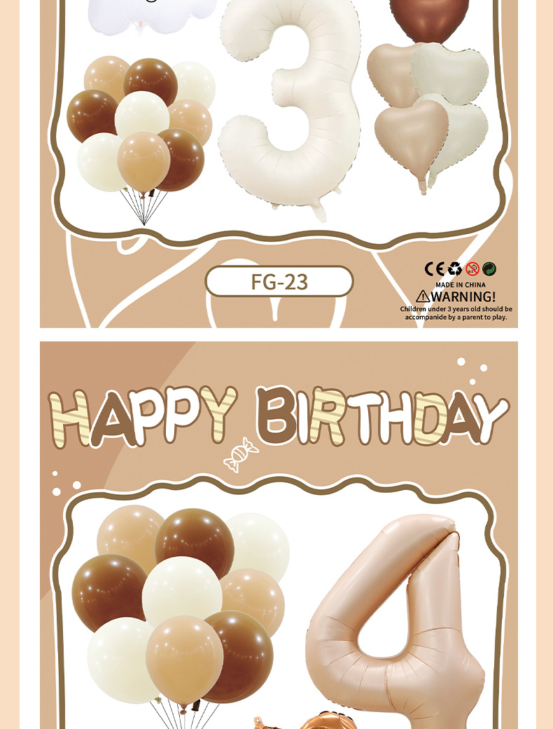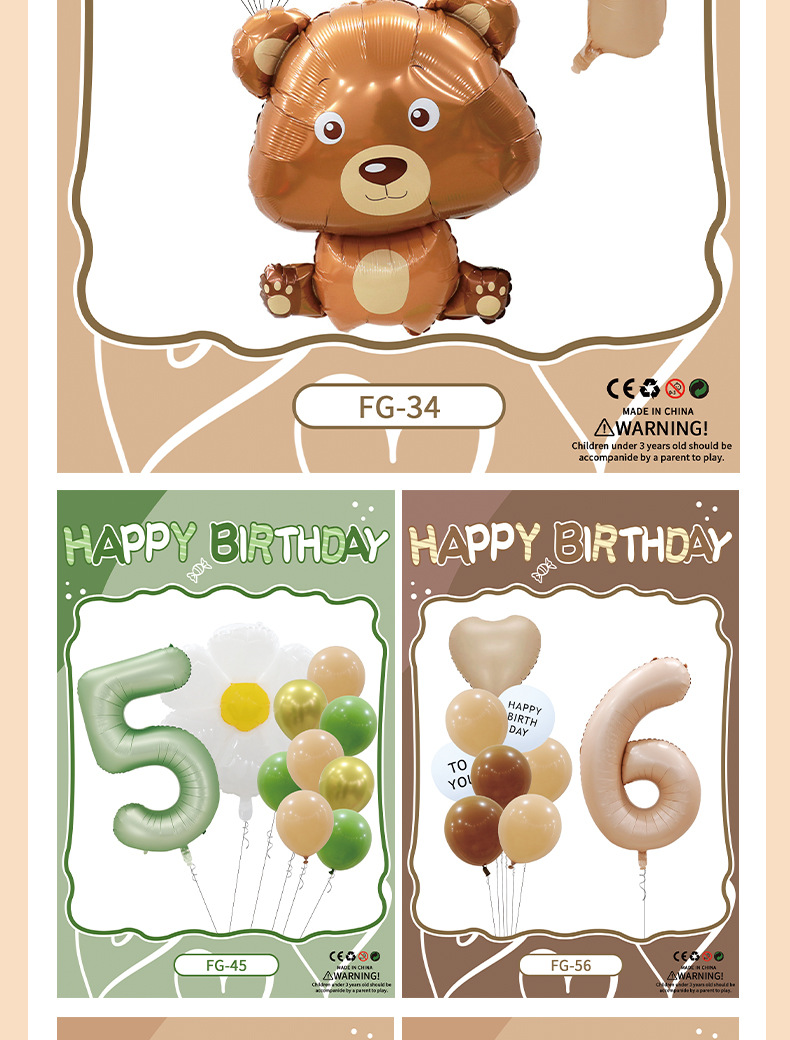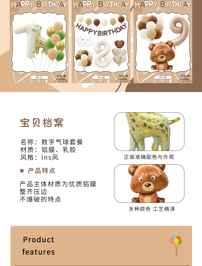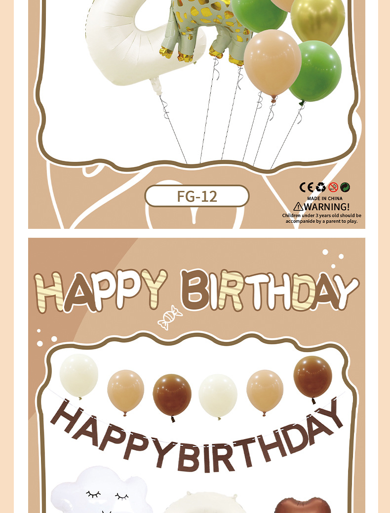 에 빈티지 크림 진한 베이지 알루미늄 필름 디지털 생일 세트 만화 동물 조합 백 카드 단일 풍선 도매스토어 가기