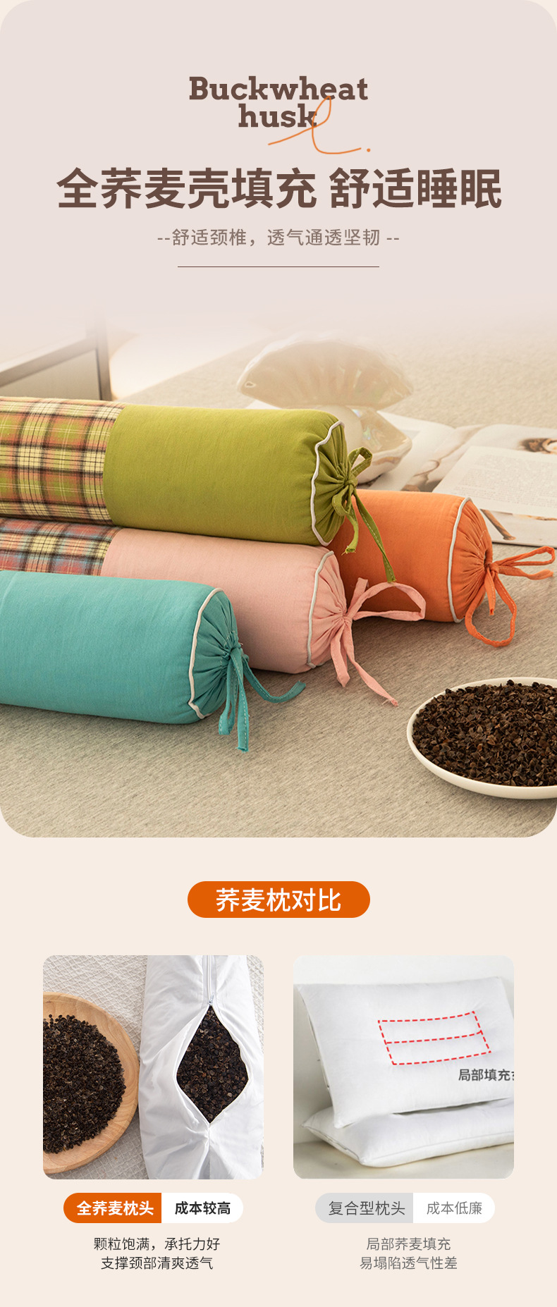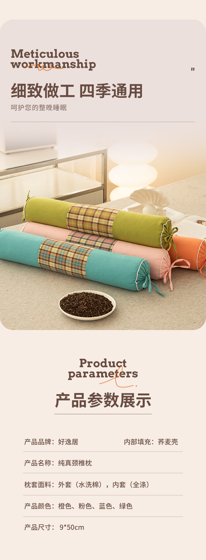Haoyiju 순수 시리즈 원통형 사탕 목 베개 자궁 경부 베개 이동식 베갯잇 메밀 충전 재고 도매스토어 가기