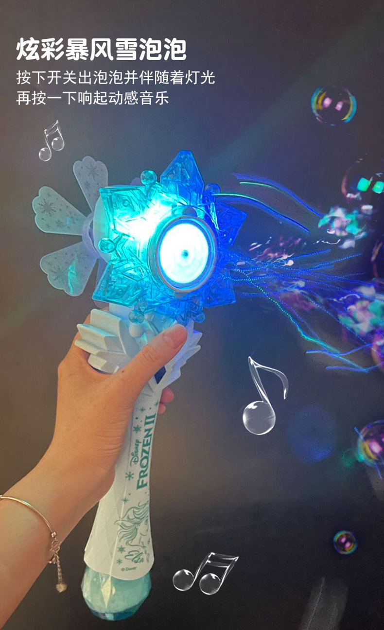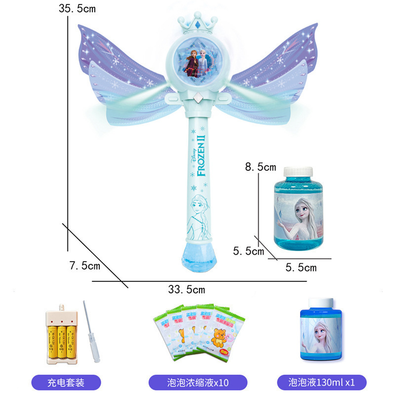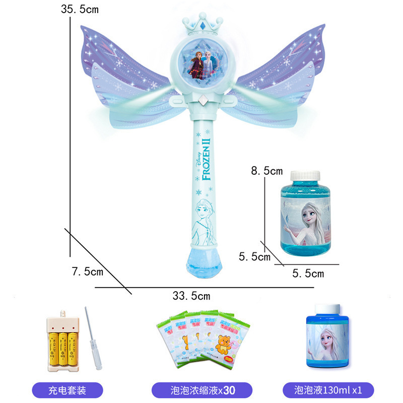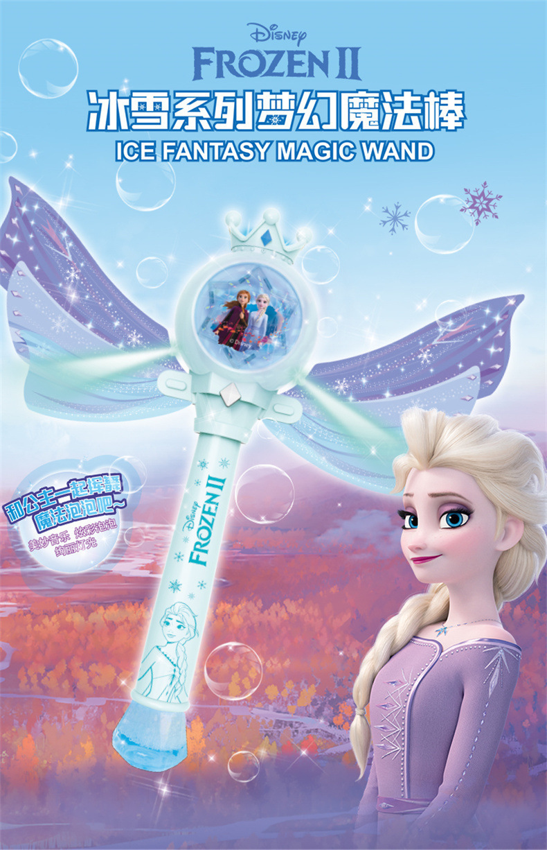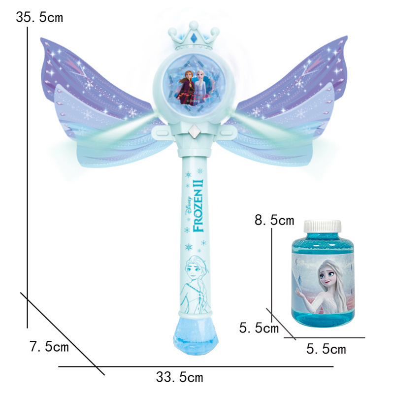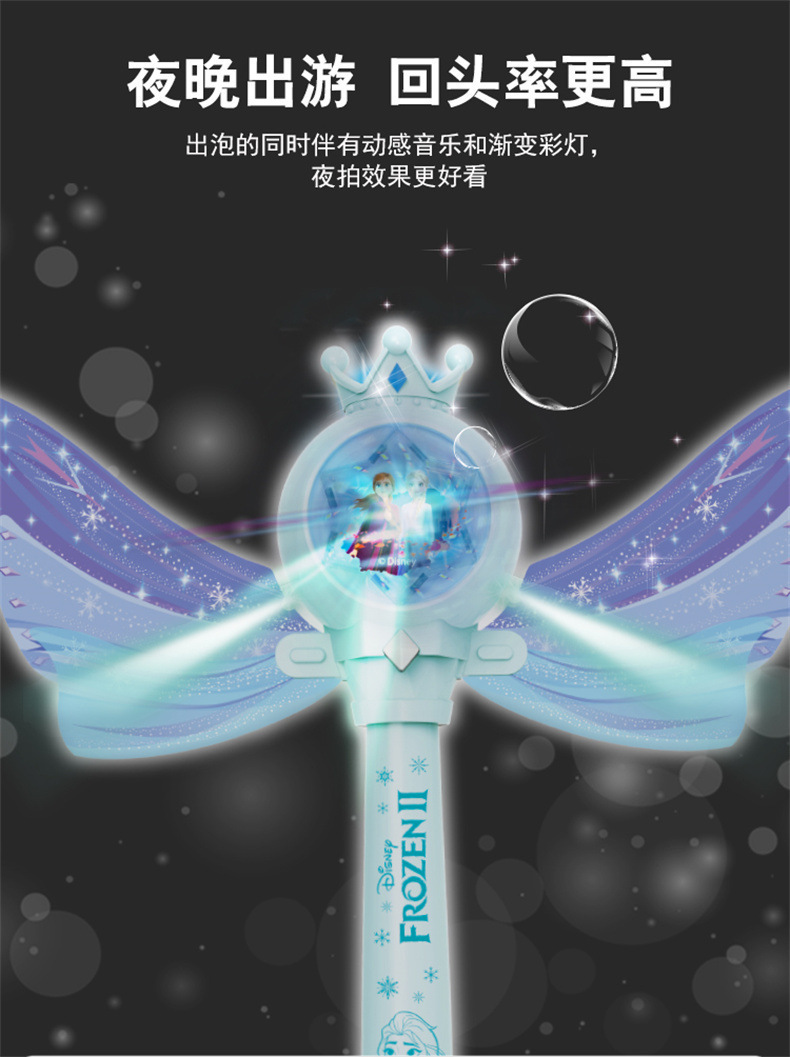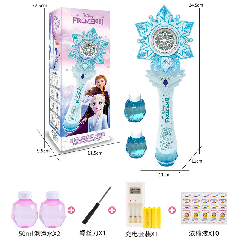 디즈니 냉동 공주 버블 마술 지팡이 전기 빛 음악 다공성 버블 건 어린이 장난감