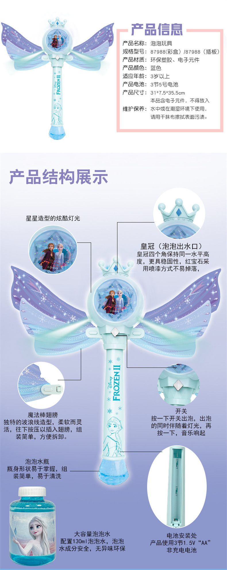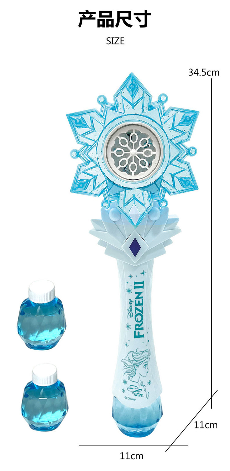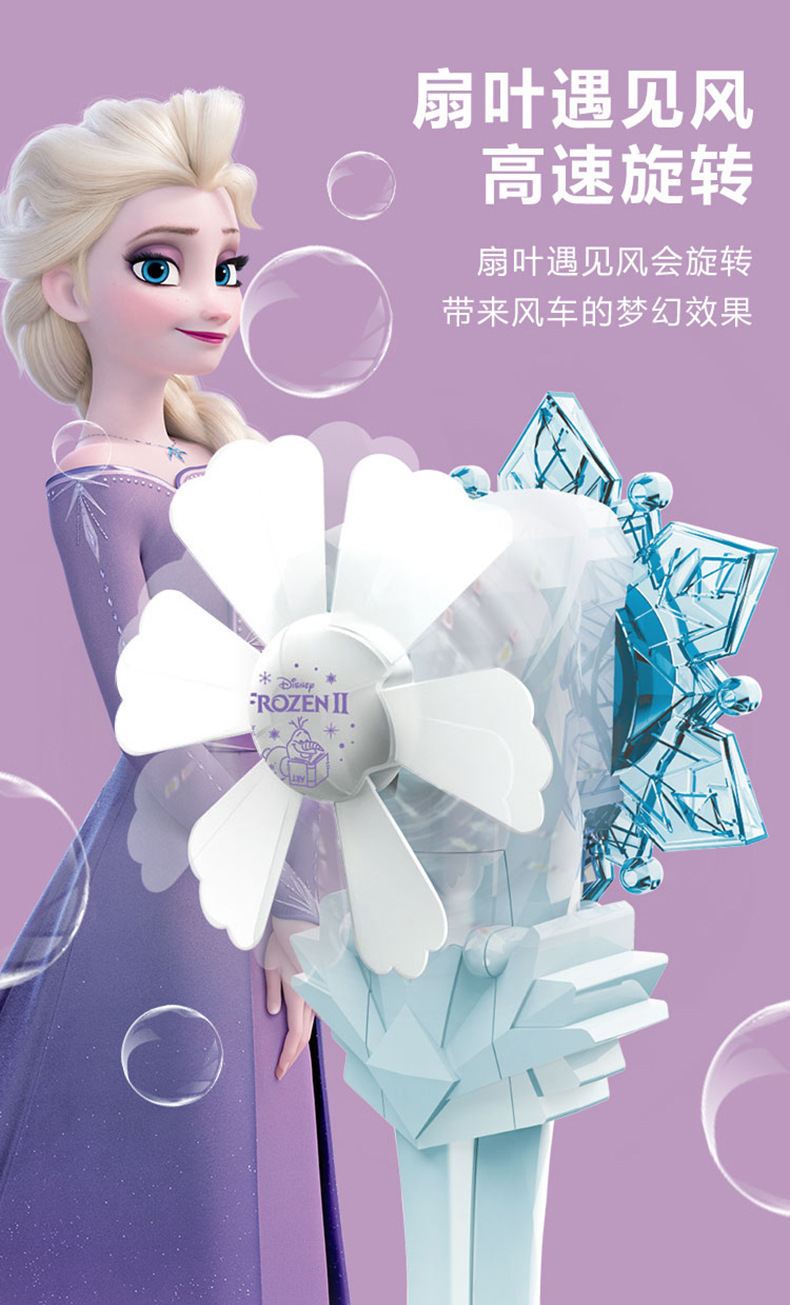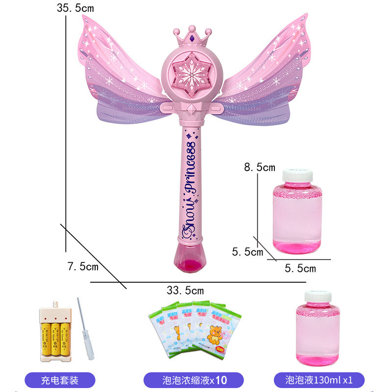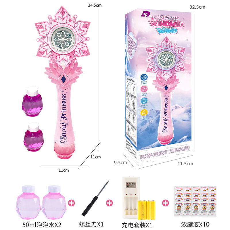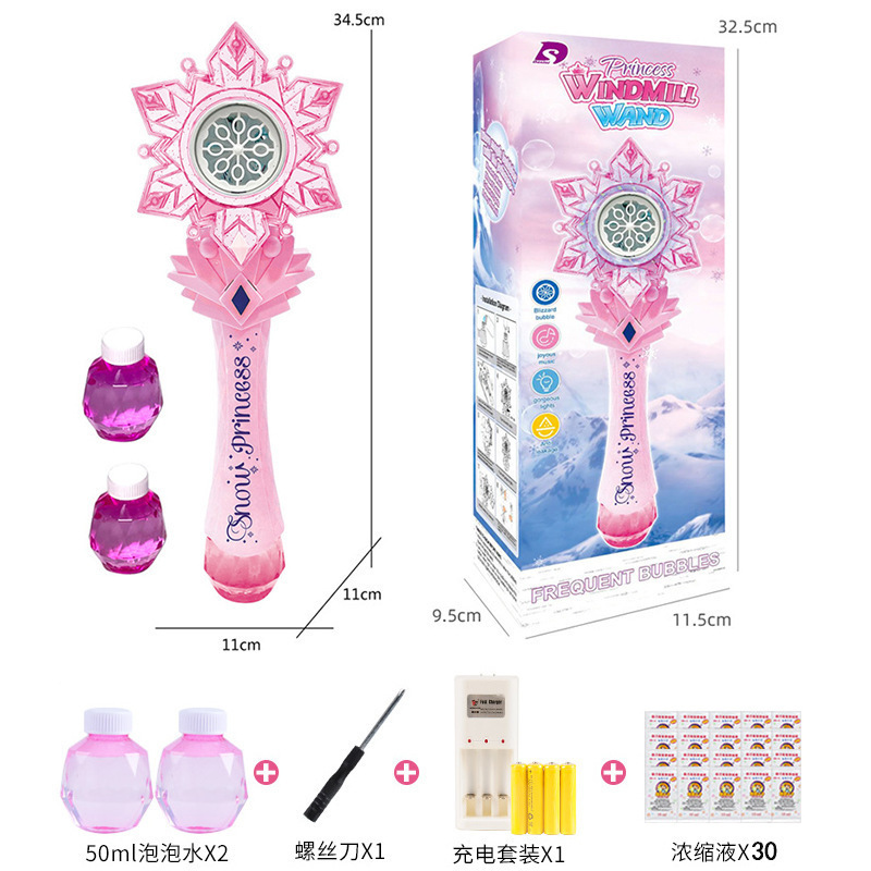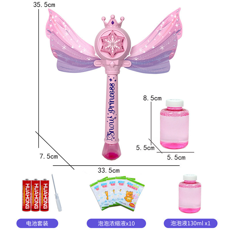 디즈니 냉동 공주 버블 마술 지팡이 전기 빛 음악 다공성 버블 건 어린이 장난감
