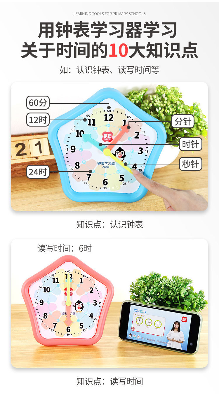 학습 A9201 시계 모델 시계 학습자 이해 시간 장난감 초등 학생을위한 수학 교재스토어 가기