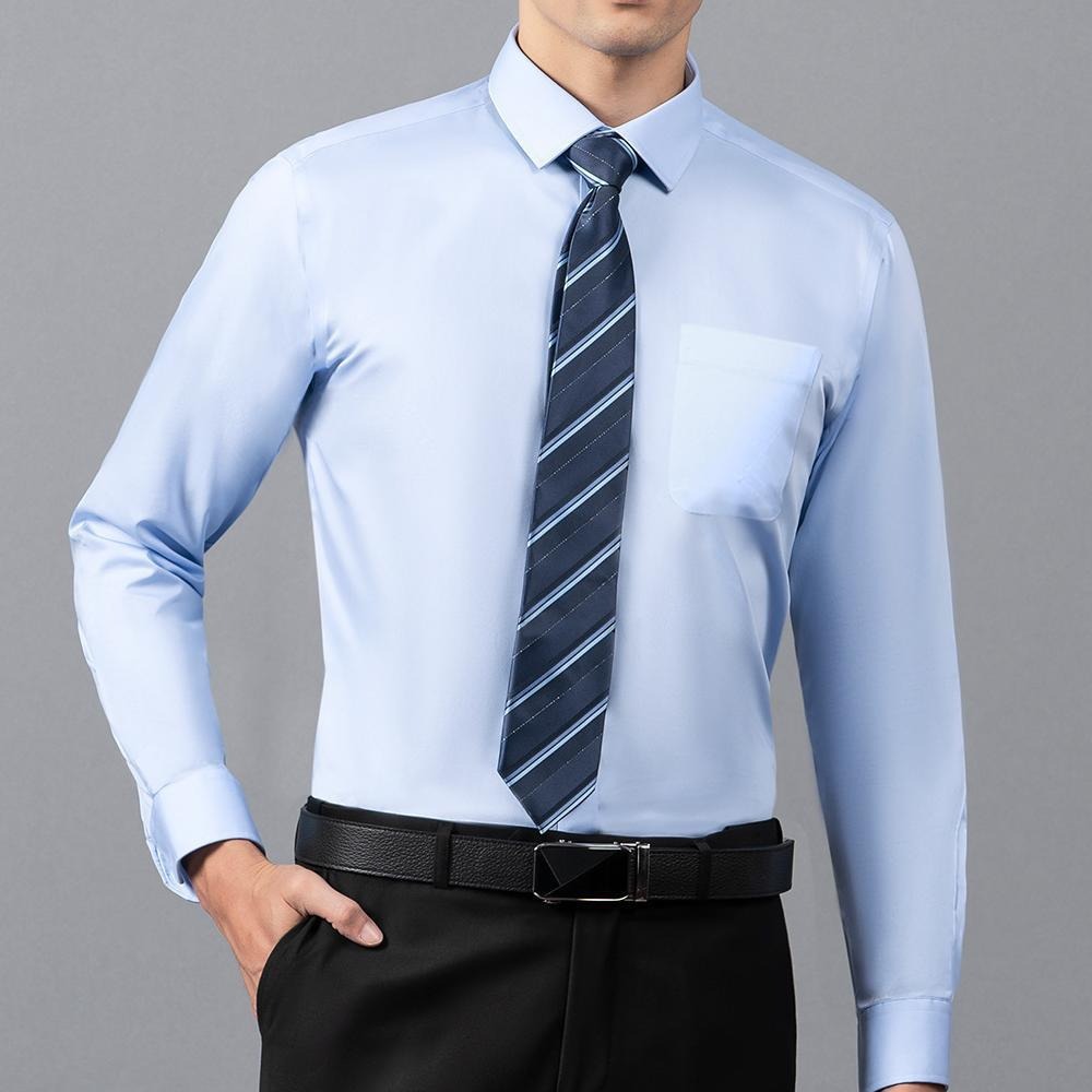 남성용 셔츠, 다림질 필요 없는 고급스러운 긴팔 흰색 셔츠, 비즈니스용 구김 방지 정장 셔츠, 로고 자수 가디건 남성복스토어 가기
