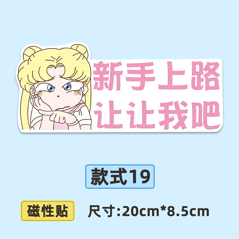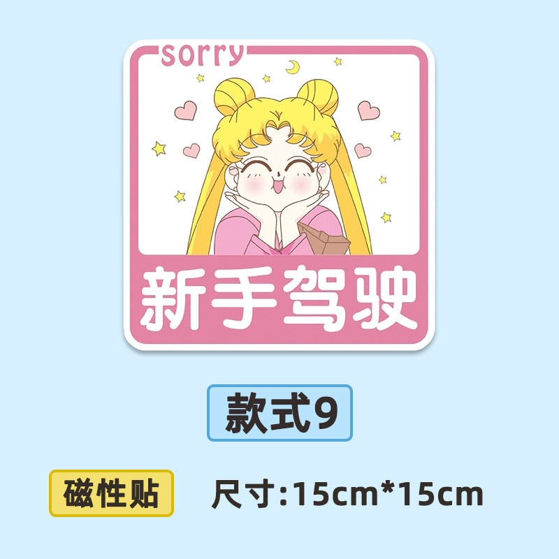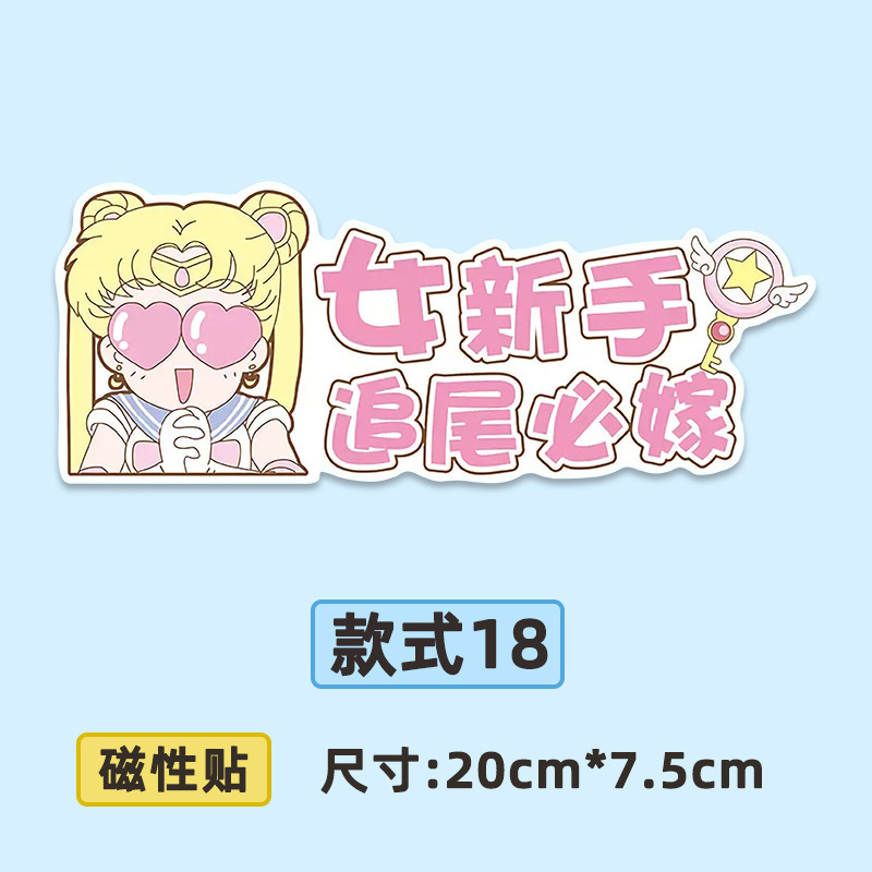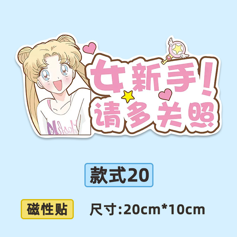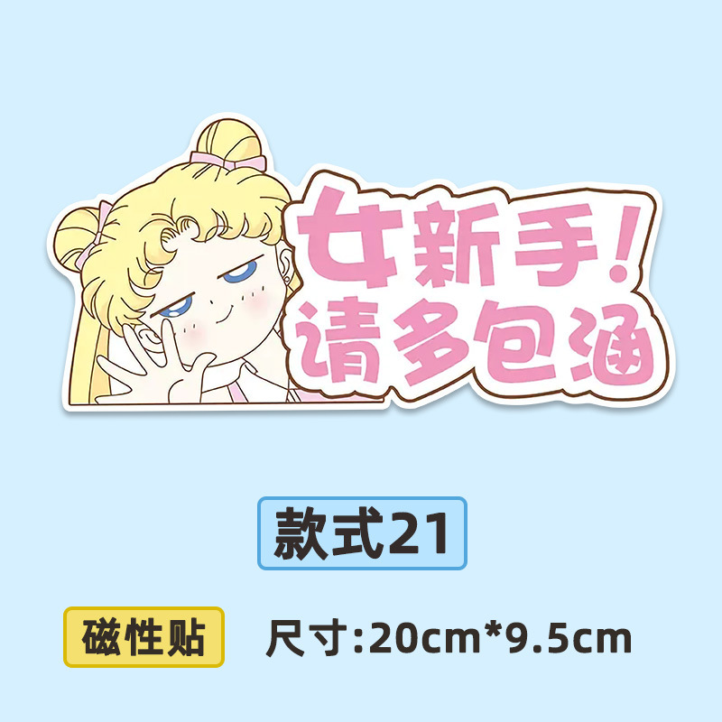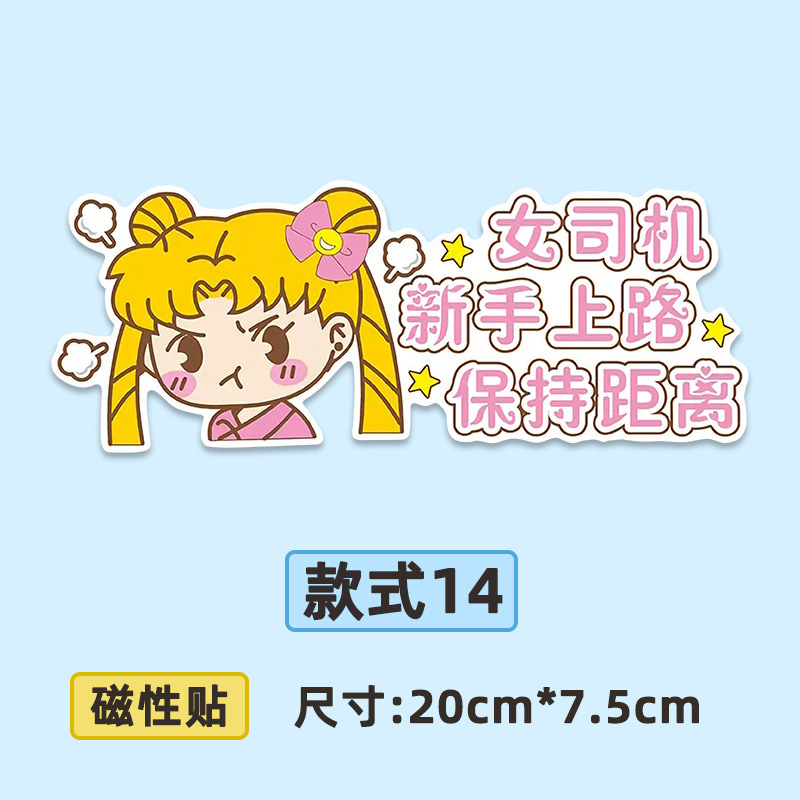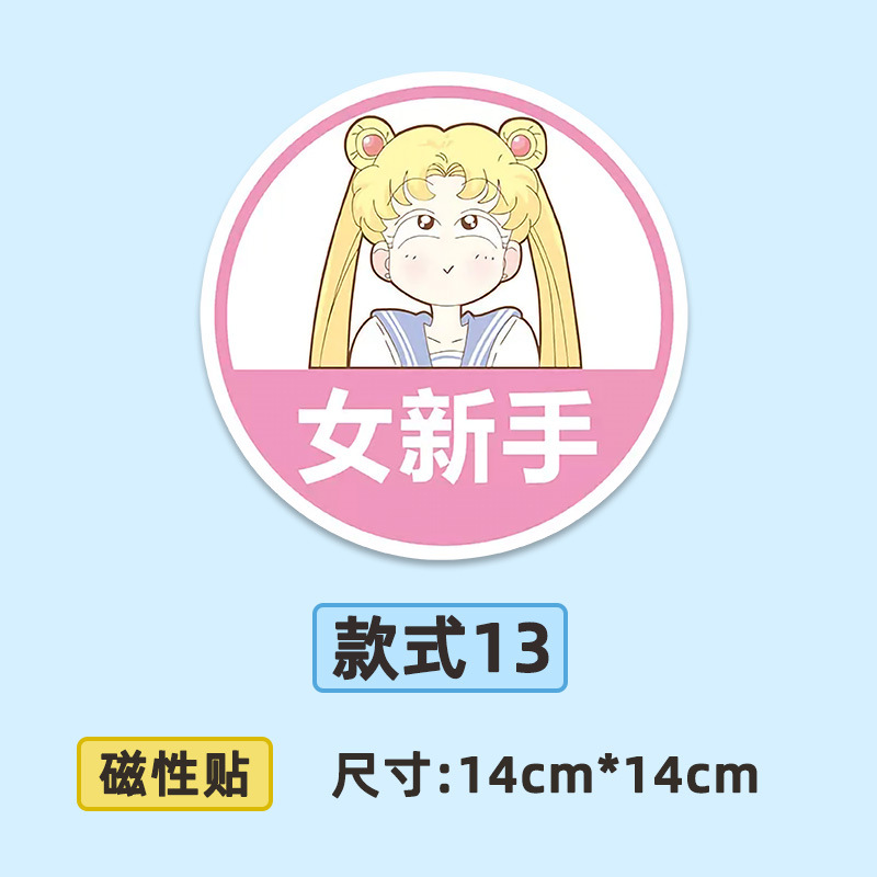 도로에 선원 전사 초보자 여성 드라이버 팁 인턴쉽 자동차 스티커 귀여운 만화 자동차 스티커 강한 마그네틱 스티커