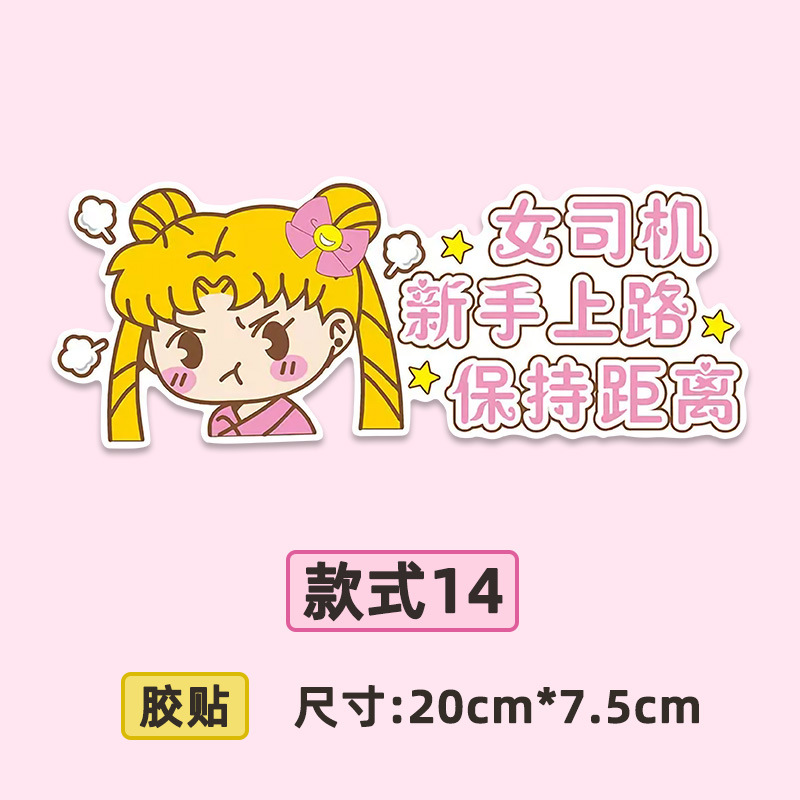 도로에 선원 전사 초보자 여성 드라이버 팁 인턴쉽 자동차 스티커 귀여운 만화 자동차 스티커 강한 마그네틱 스티커스토어 가기