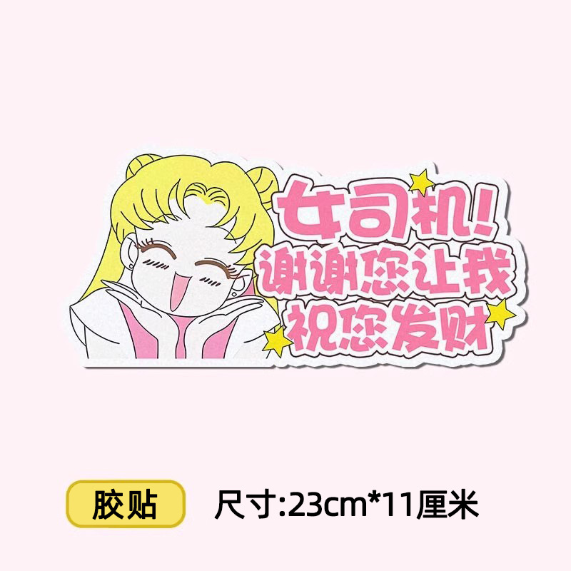 • 자석 스타일 23 아름다운 소녀의 얼굴을 받치는 모습 - 여성 운전자! 행운을 빕니다 [23x11cm]