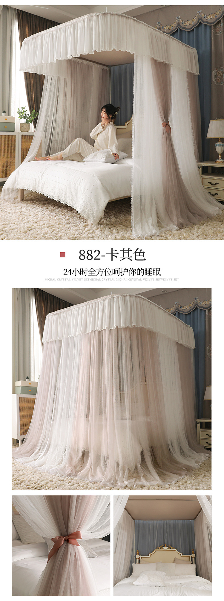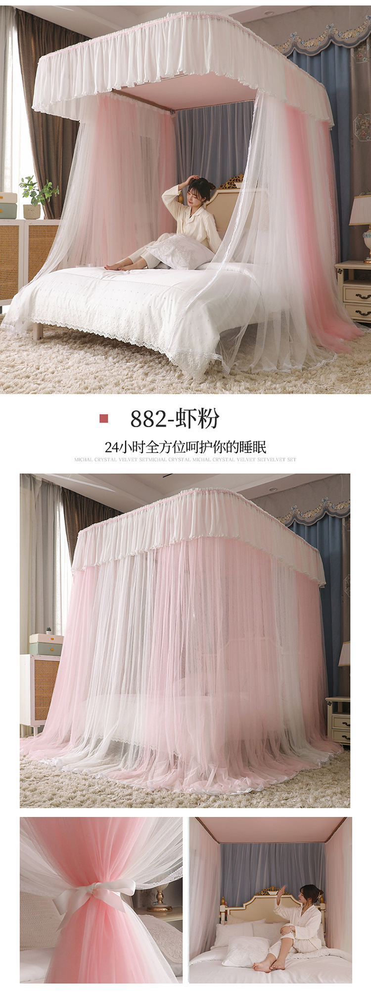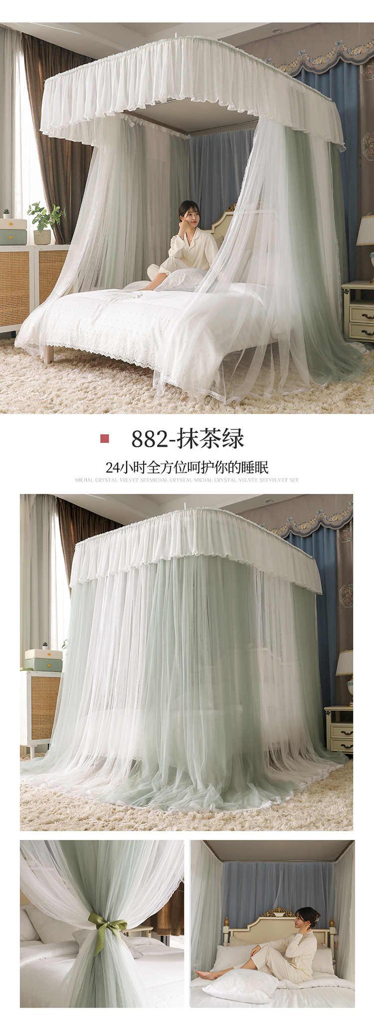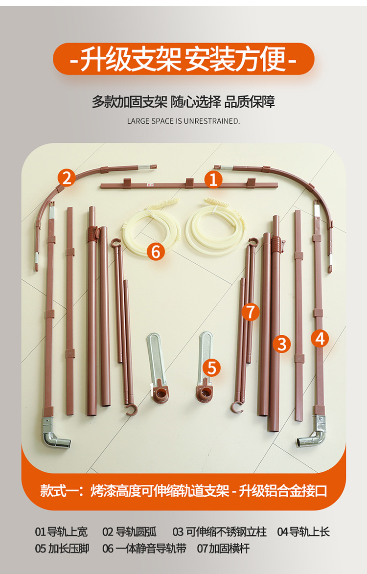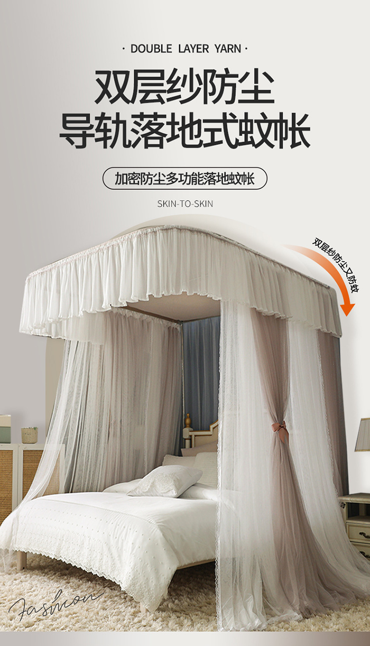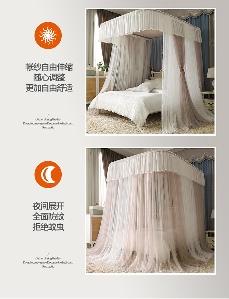 더블 U 자형 가이드 모기장 두꺼운 알루미늄 합금 브래킷 프랑스 공주 바람 침대 커튼 1.2m 낚싯대 가정용 1.8스토어 가기