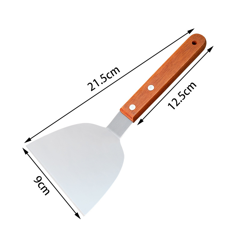 나무 손잡이 스테인레스 스틸 Teppanyaki 냄비 삽 고온 스테이크 팬케이크 버거 삽 요리 도구 가정용 일본식 스테이크 삽
