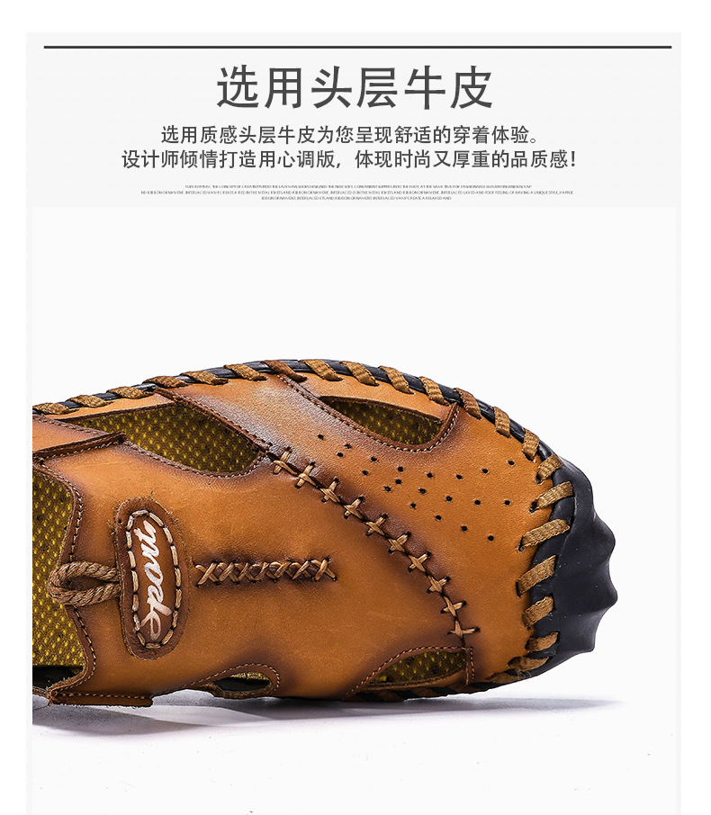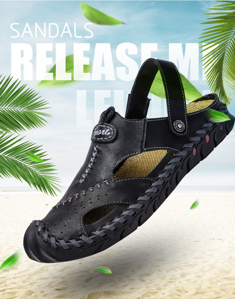 크로스 보더 플러스 사이즈 남성 샌들 비치 샌들 다용도 남성용 통기성 캐주얼 중공 가죽 샌들 2 층 소가죽 남성 신발