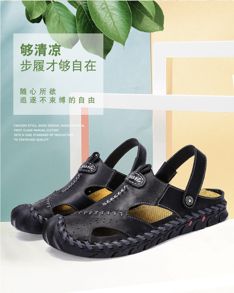 크로스 보더 플러스 사이즈 남성 샌들 비치 샌들 다용도 남성용 통기성 캐주얼 중공 가죽 샌들 2 층 소가죽 남성 신발스토어 가기