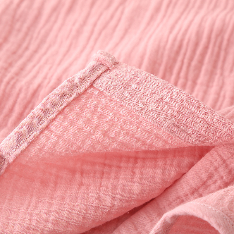 여름 여자의 간단한 면 거즈 얇은 반팔 잠옷 격자 무늬 바지 아웃웨어 느슨한 세트
