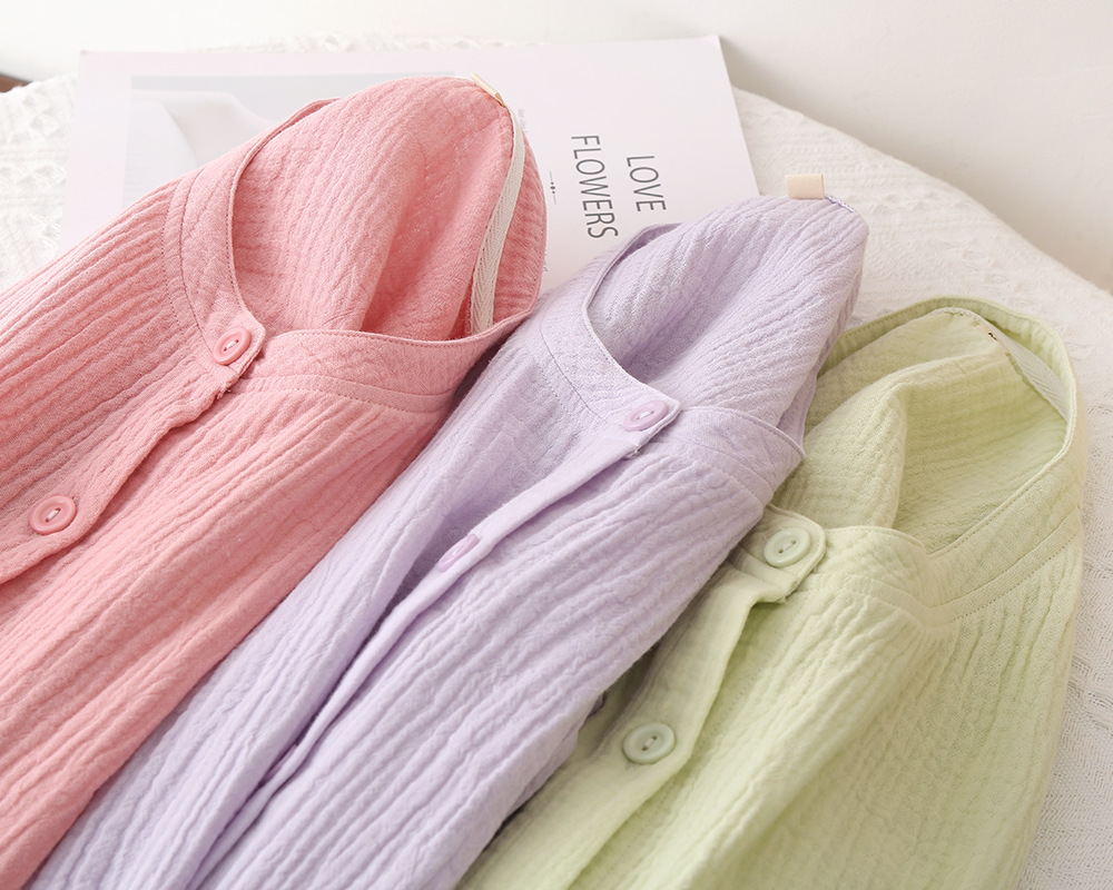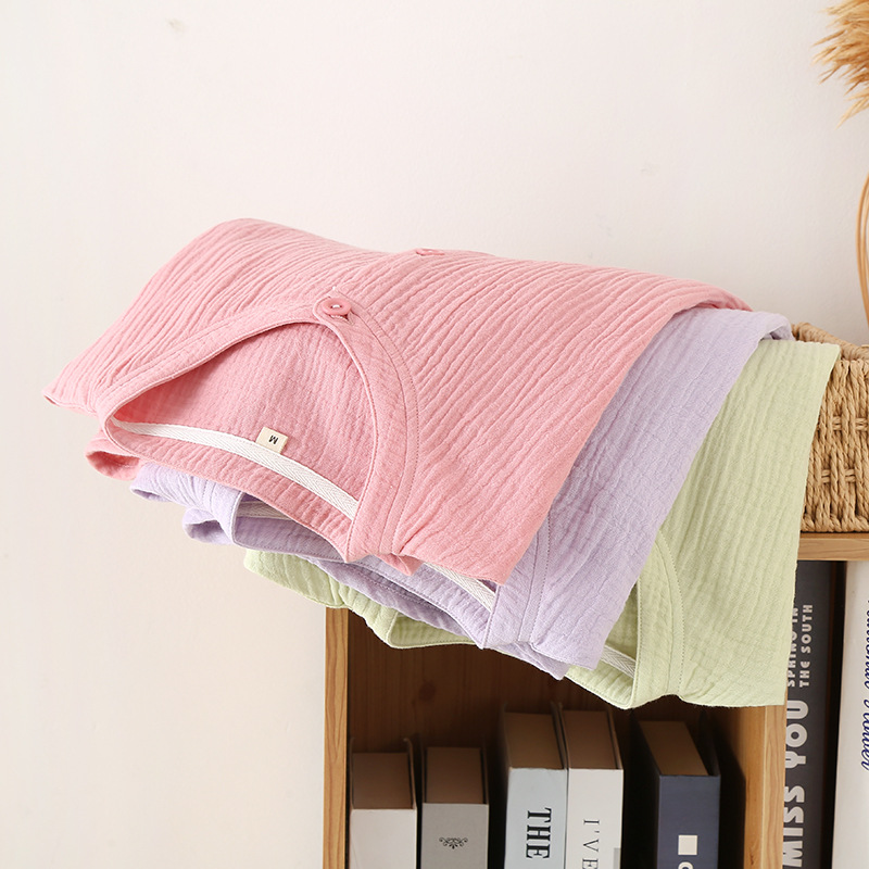 여름 여자의 간단한 면 거즈 얇은 반팔 잠옷 격자 무늬 바지 아웃웨어 느슨한 세트스토어 가기