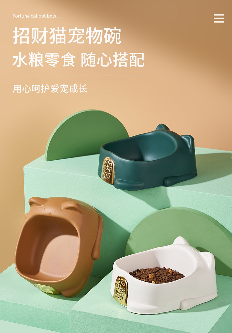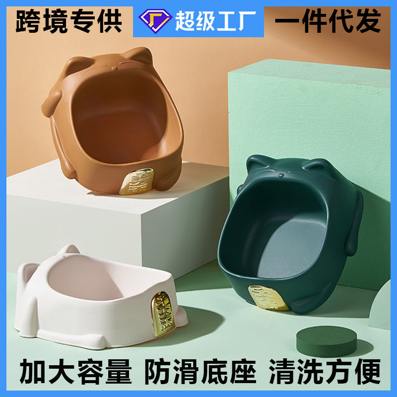 애완 동물 고양이 그릇 가벼운 럭셔리 만화 행운의 고양이 스타일 애완 동물 단일 그릇 미끄럼 방지 노크 방지 자궁 피더 개 그릇