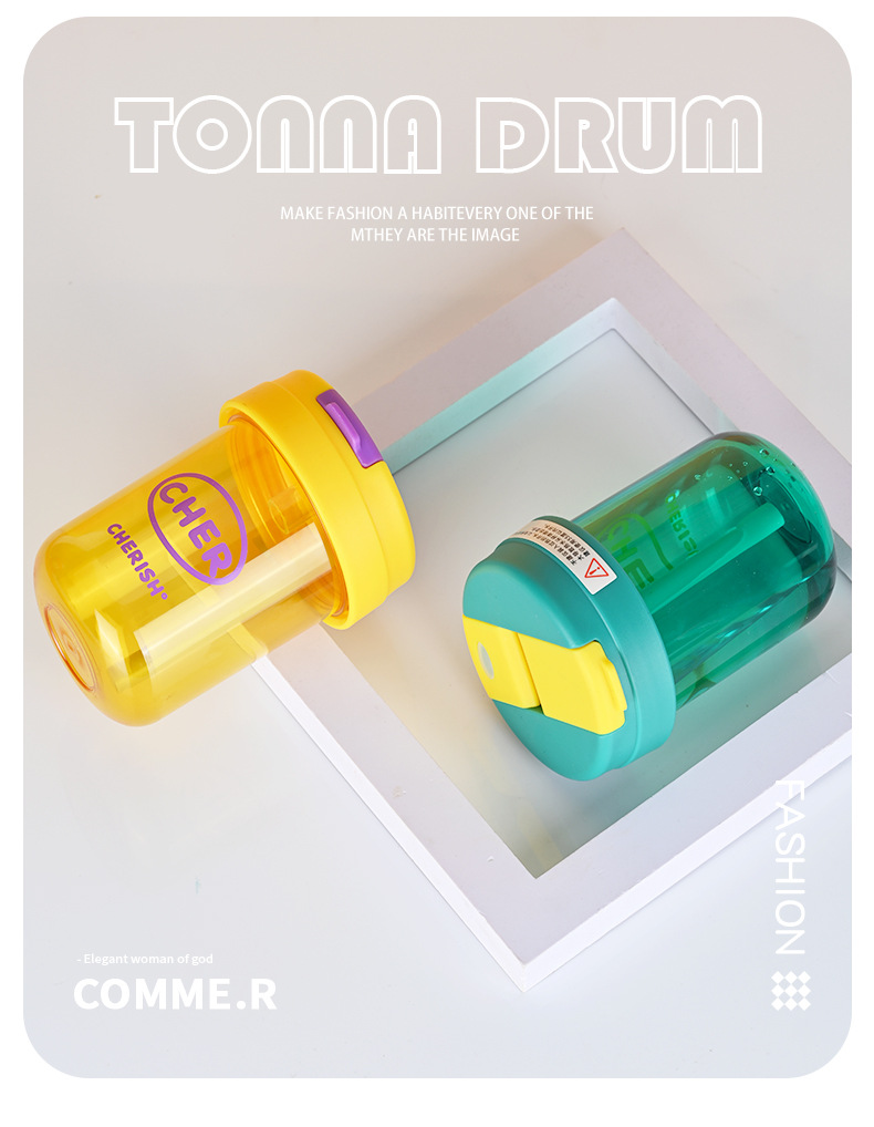 新款网红太空仓大肚杯儿童大容量塑料杯学生可爱吸管杯便携公仔杯