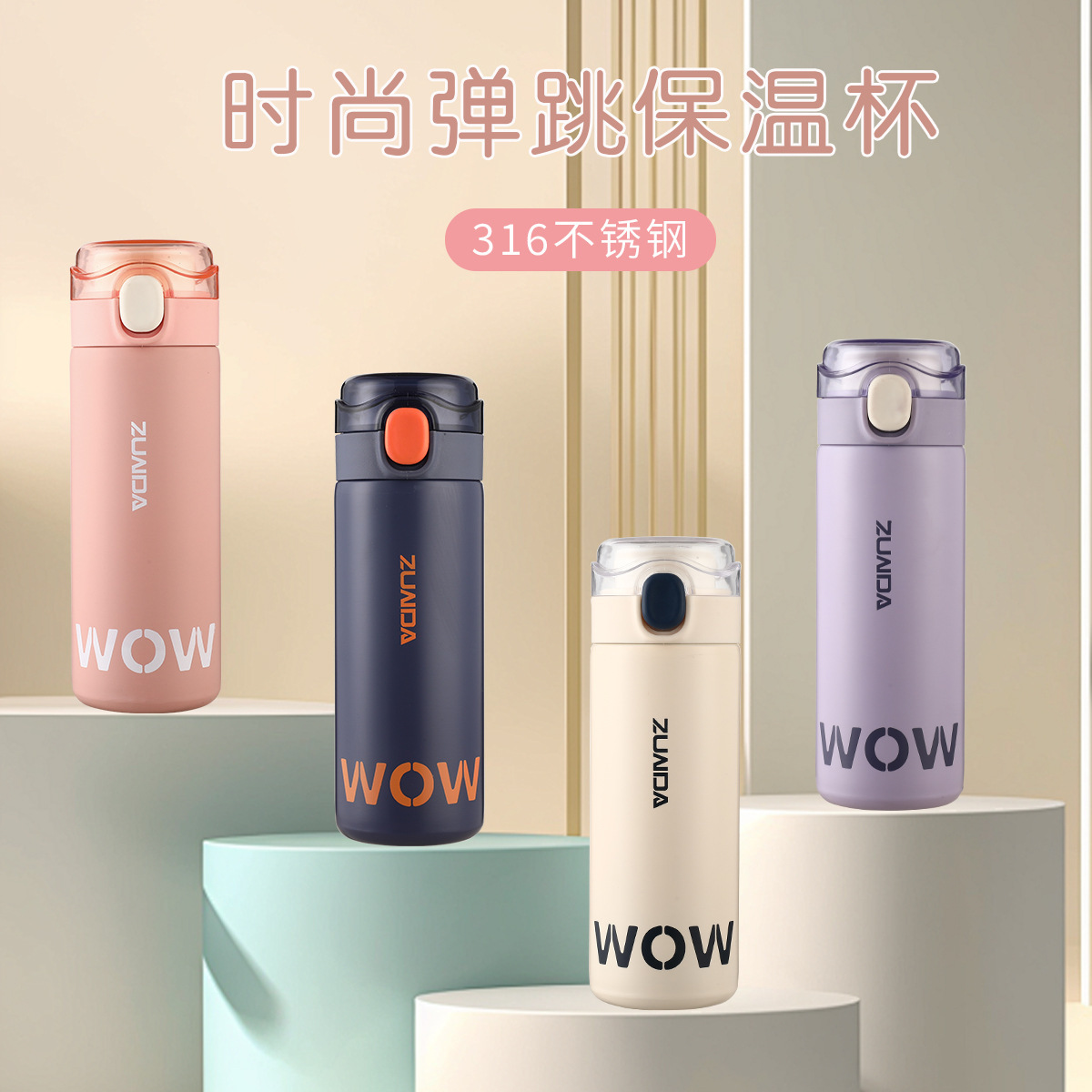 简约字母双饮弹跳杯304不锈钢数显保温杯学生水杯便携随身杯批发