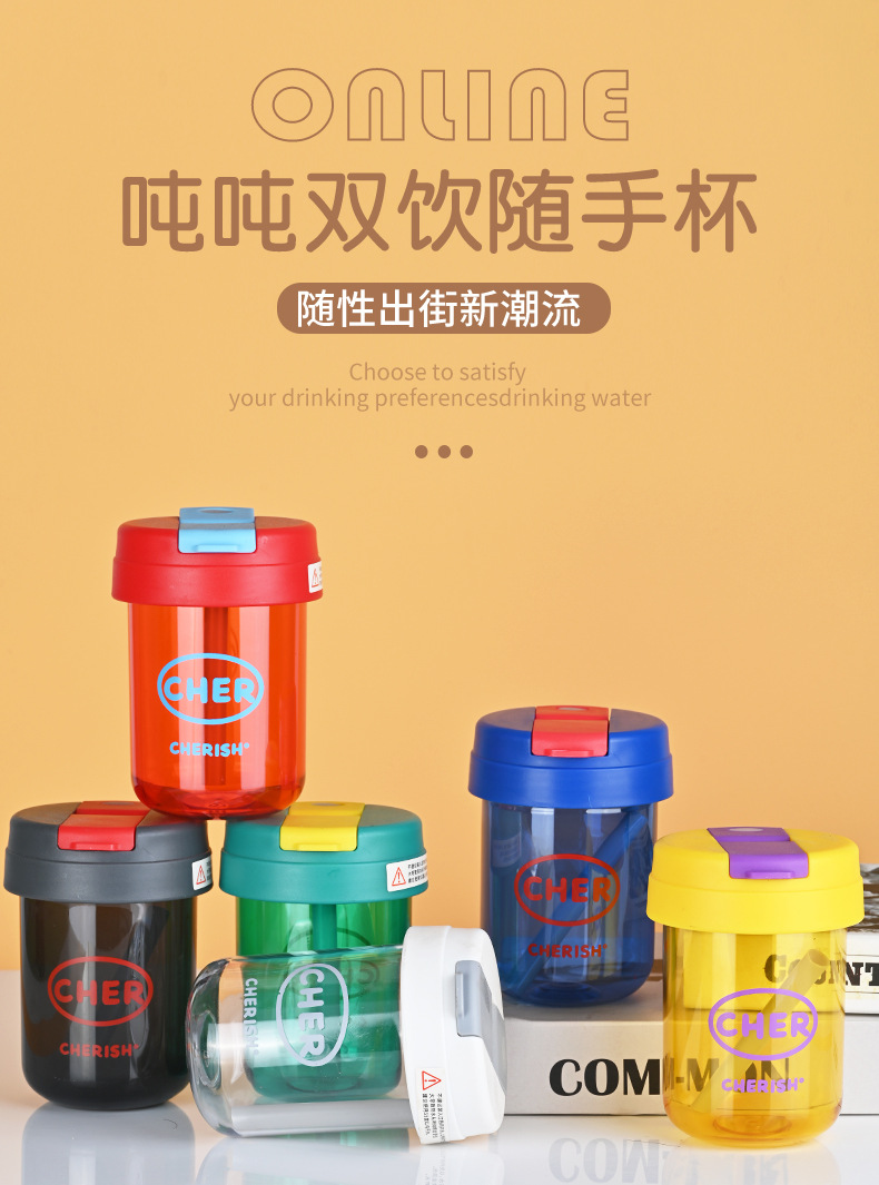 户外Ins吸管杯迷你便携吨吨桶水杯子随手咖啡塑料杯LOGO印字礼品