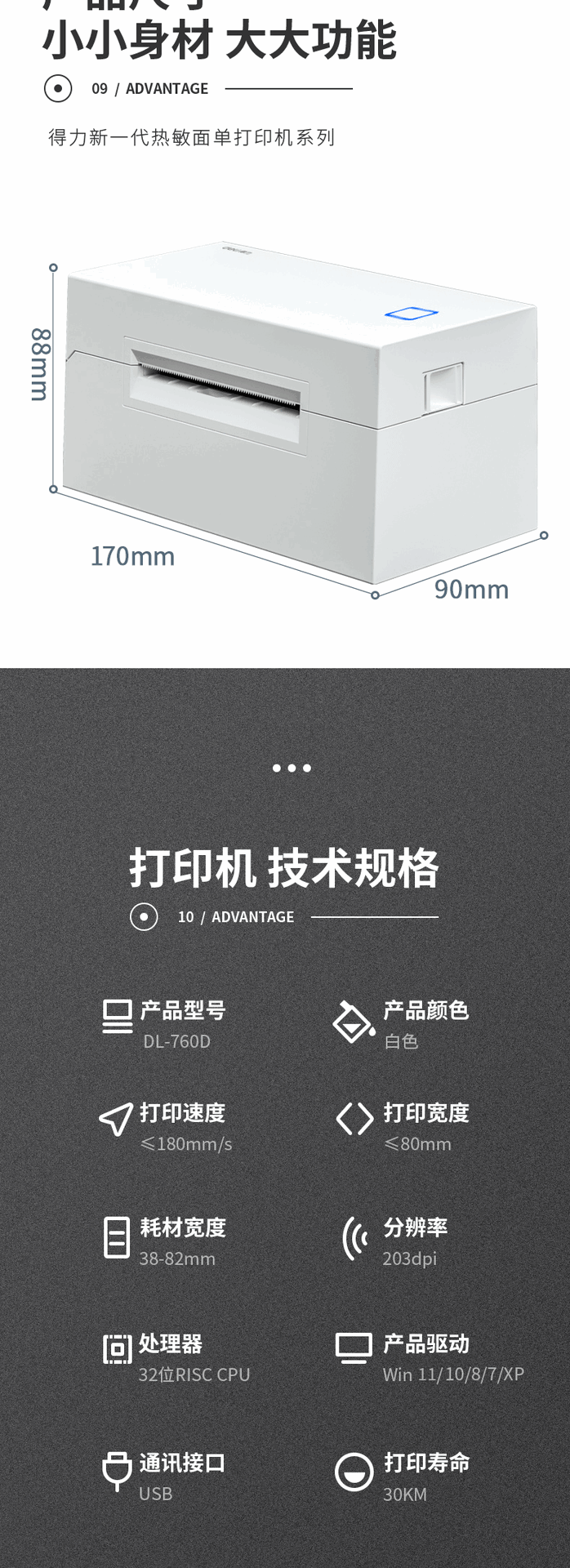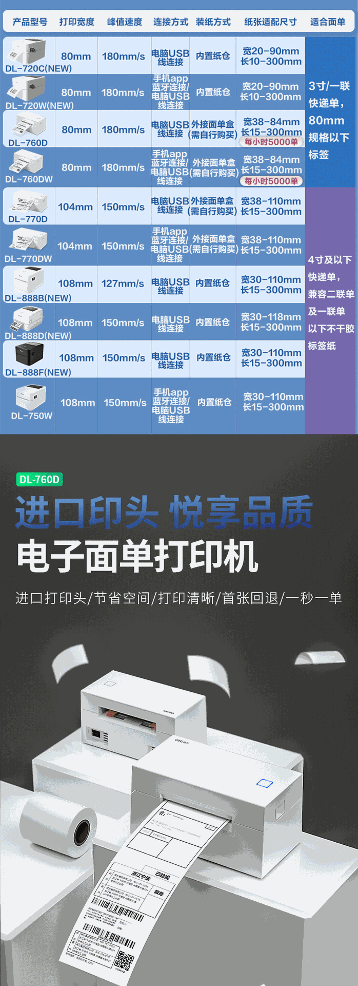 델리 DL-760D 무선 블루투스 휴대 전화 연결 열 프린터 익스프레스 단일 전자 얼굴 단일 라벨 인쇄스토어 가기