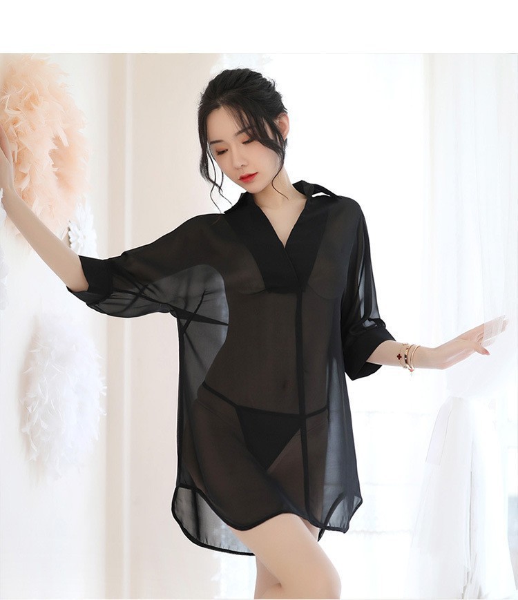 베이지 사랑 섹시한 속옷 여성의 관점 쉬폰 셔츠 잠옷 가정 옷 열정 유혹 세트 도매 2372스토어 가기