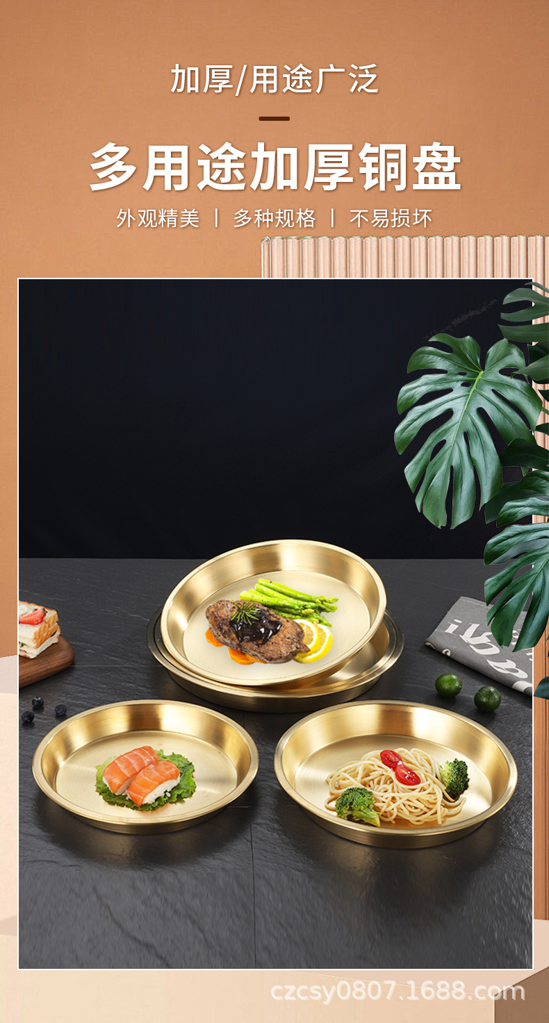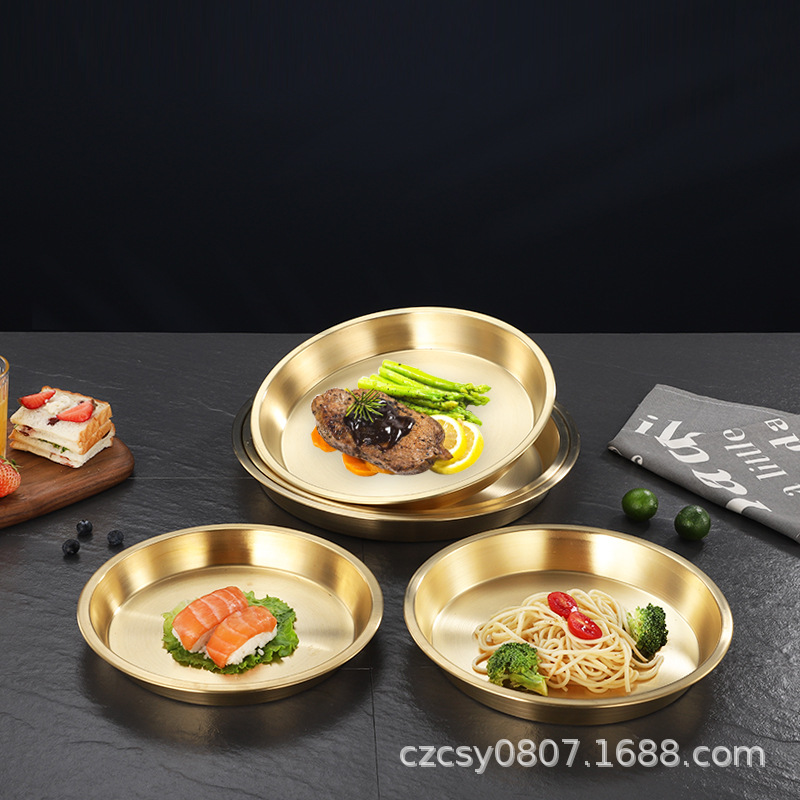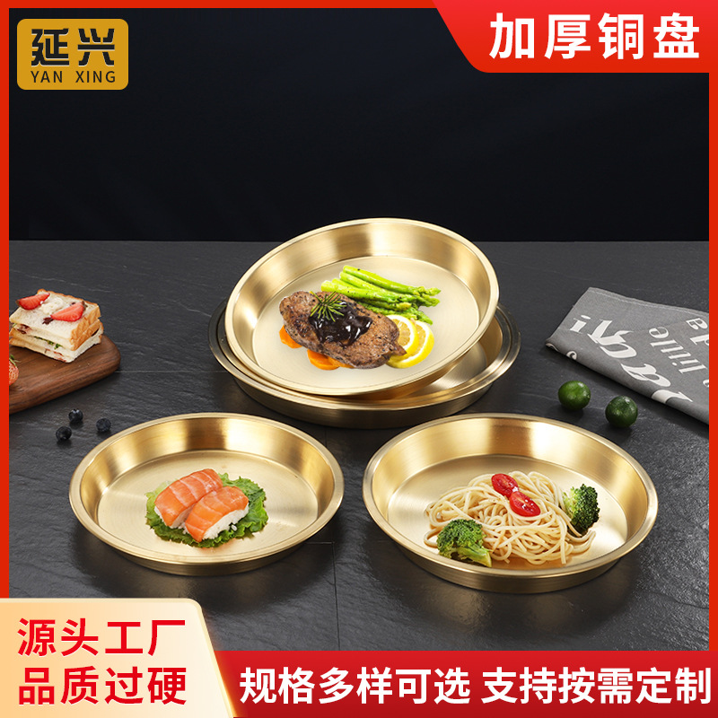 순황동 접시, 노란색 희생용 접시, 원형 구리 과일 접시, 가정용 케이크/디저트 접시, 과일 접시, 모던하고 심플한 디자인