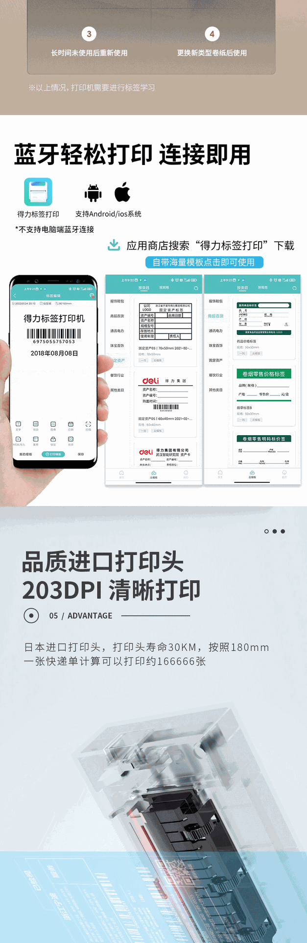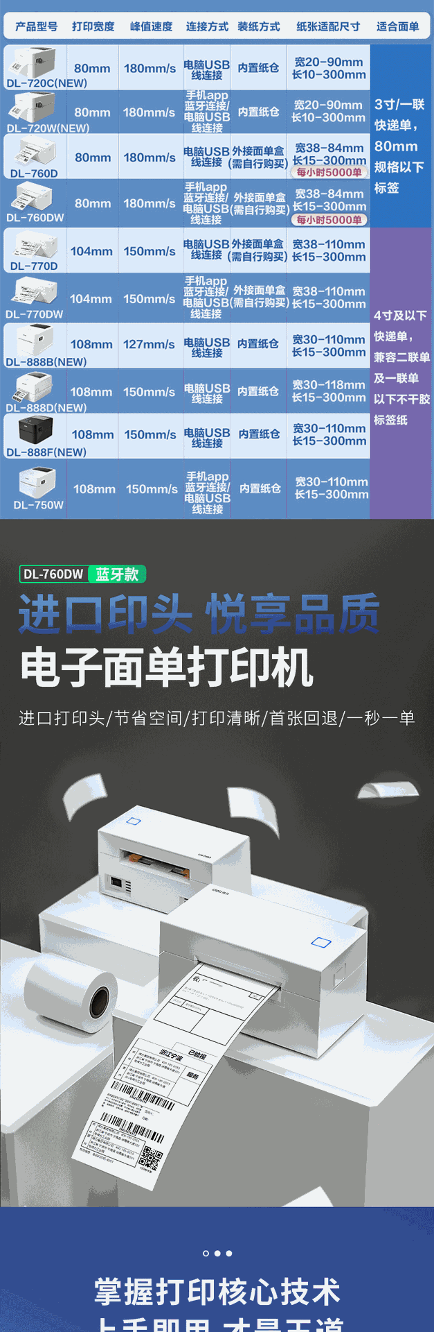 델리 DL-760DW 라벨 프린터 열 소형 블루투스 접착 바코드 전자 표면 단일 기계