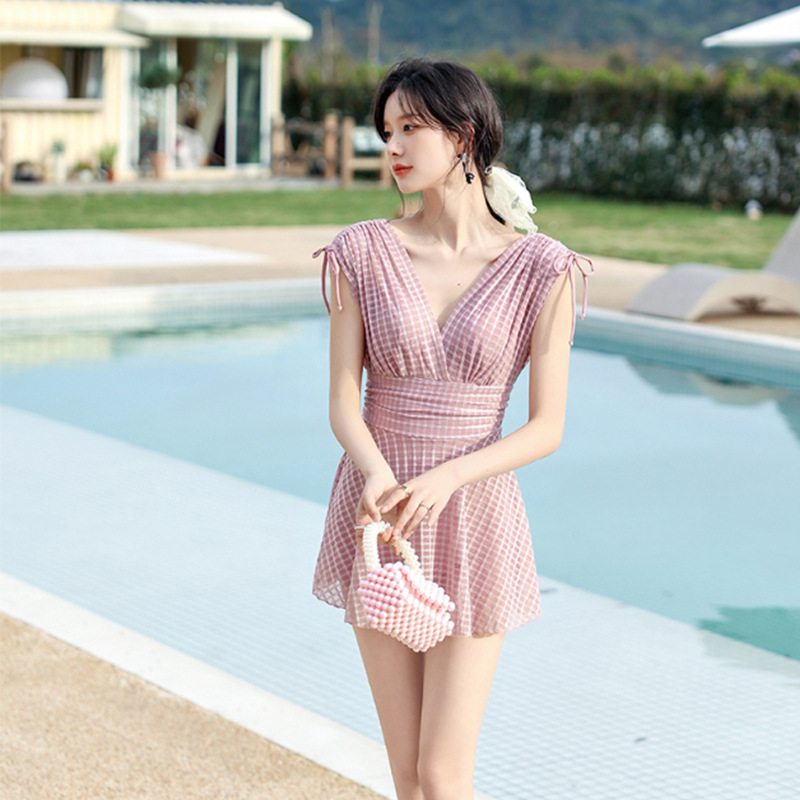 수영복 여성용 스틸 브라 슬링 달콤한 원피스 스커트 벨리 커버 슬리밍 전문 수영 세트 휴가 온천