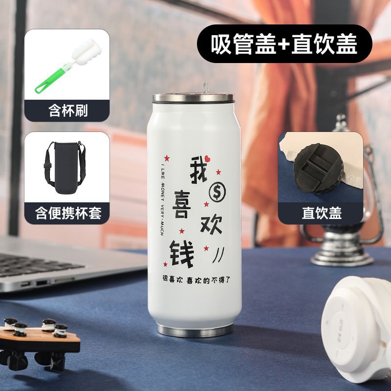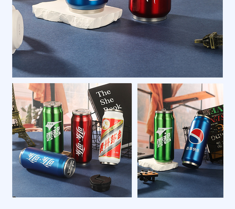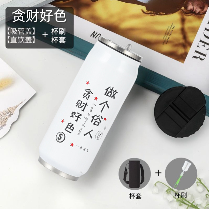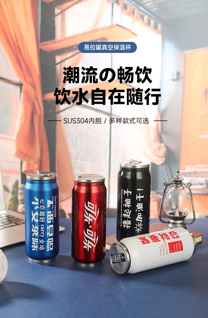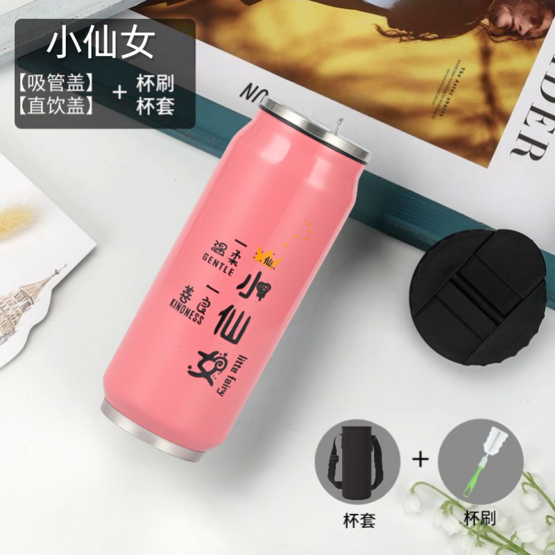 창의적인 콜라캔 보온병 스테인리스 캔 물컵 차량용 어린이 학생 음료 빨대컵 도매스토어 가기