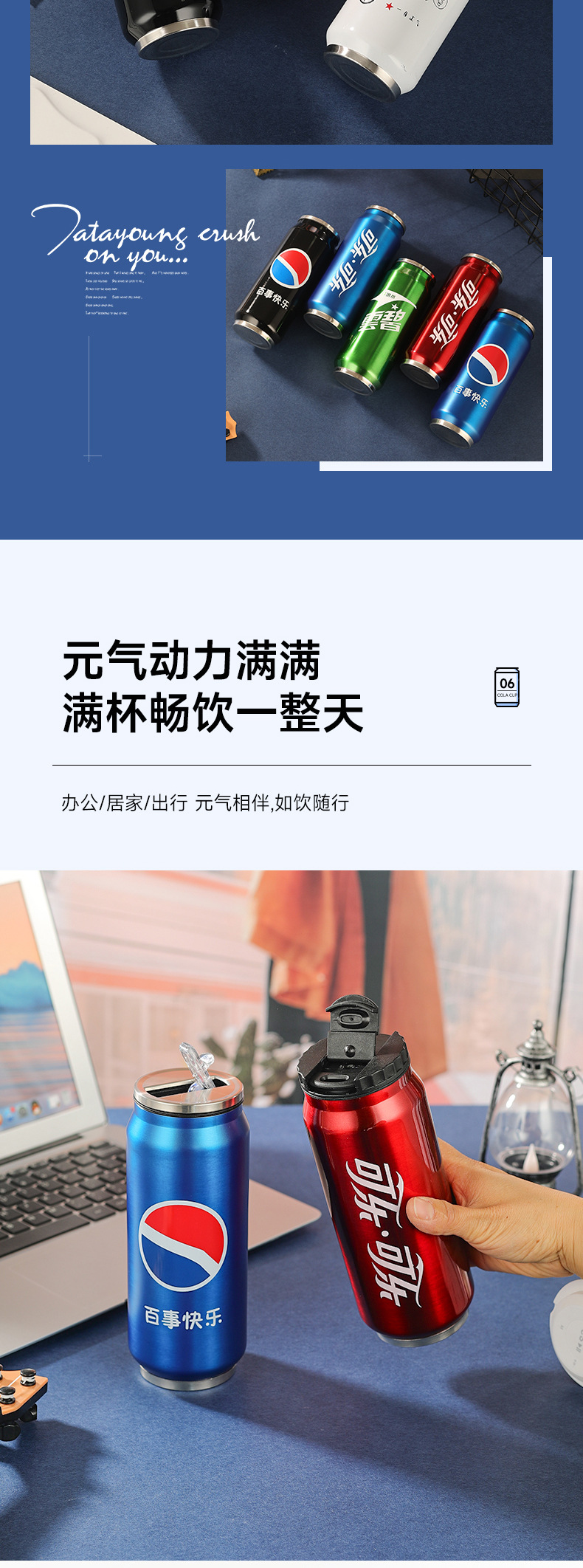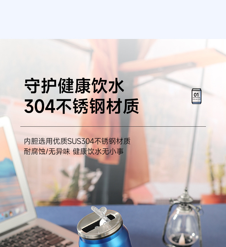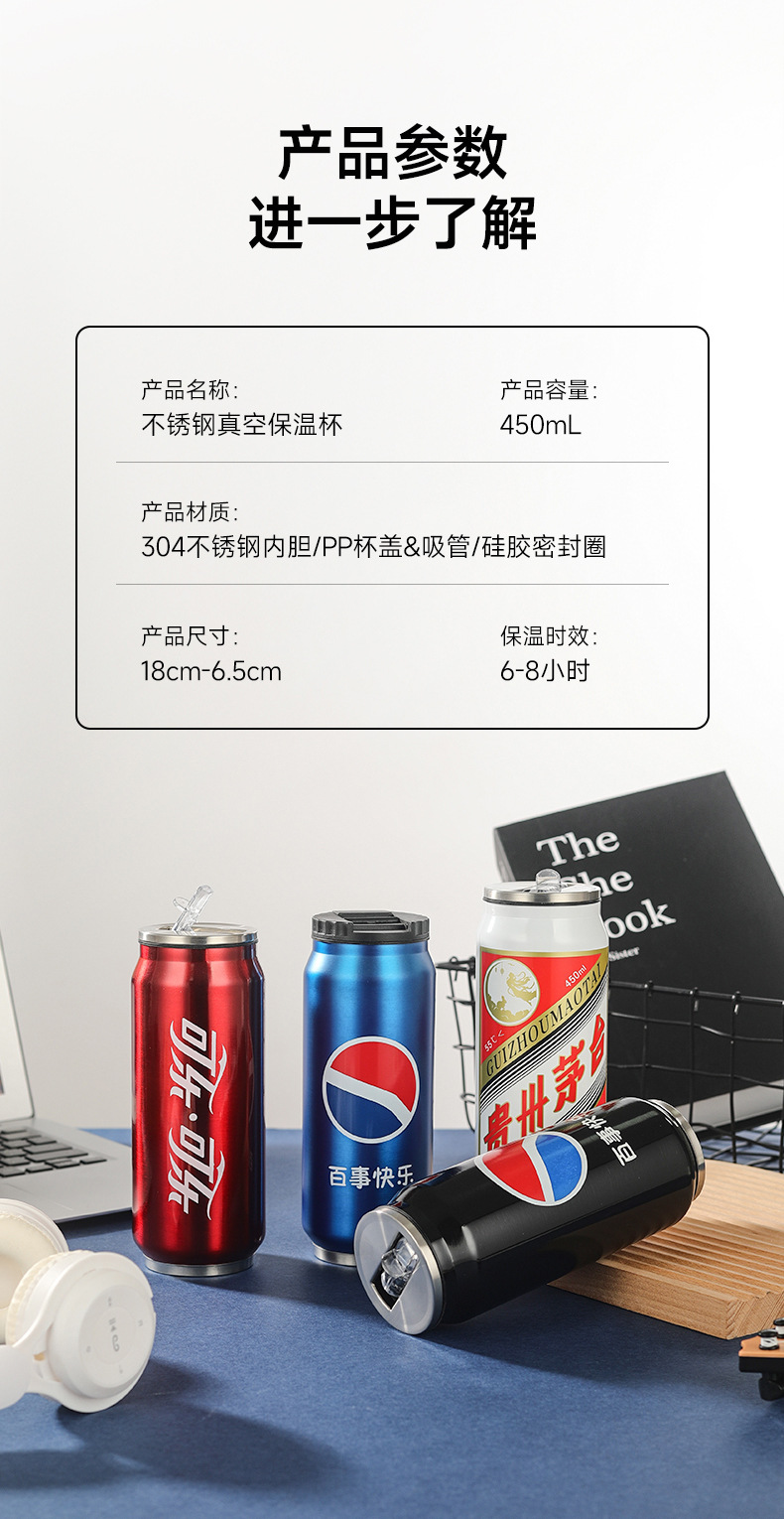 창의적인 콜라캔 보온병 스테인리스 캔 물컵 차량용 어린이 학생 음료 빨대컵 도매스토어 가기