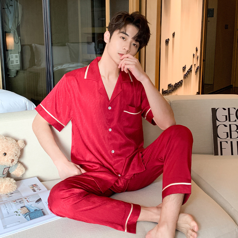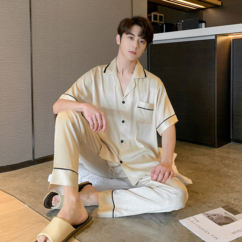 아이스 실크 잠옷 커플 여름 여성용 짧은 바지 2023 새로운 고급 남성용 시뮬레이션 실크 홈스토어 가기