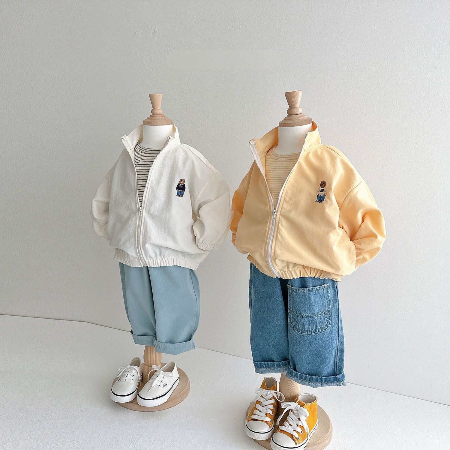 한국 in 여름 아동복 코트 아기 소년과 소녀 얇은 만화 곰 자외선 차단제 코트 어린이 봄과 여름 지퍼 셔츠스토어 가기