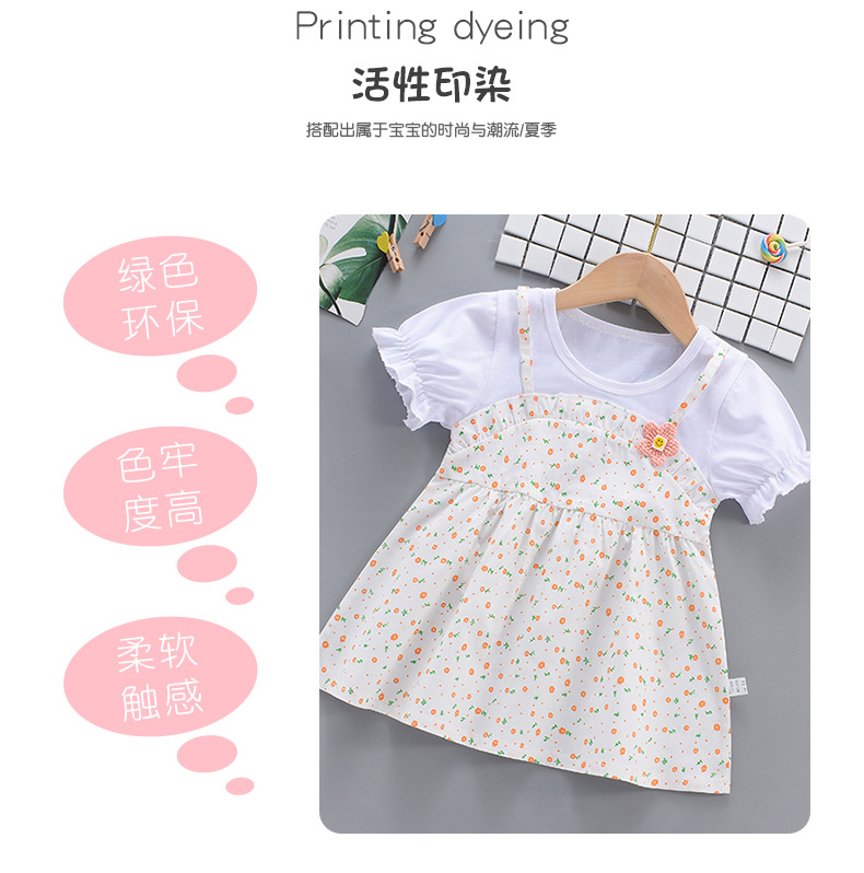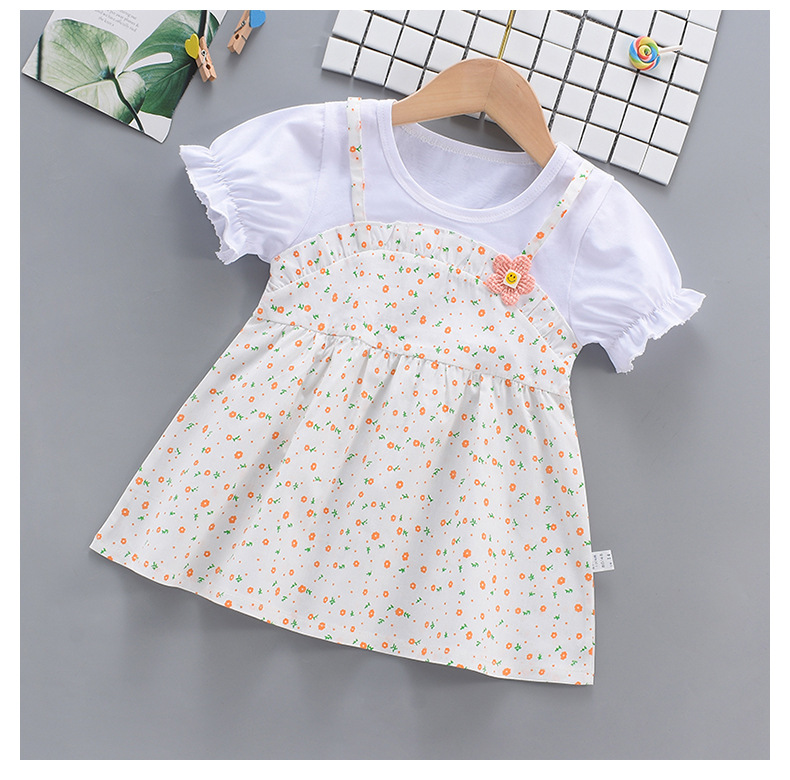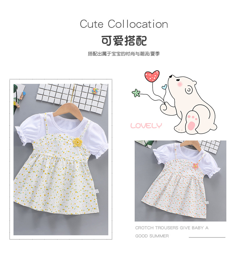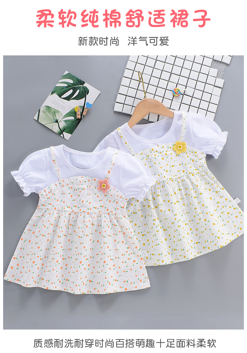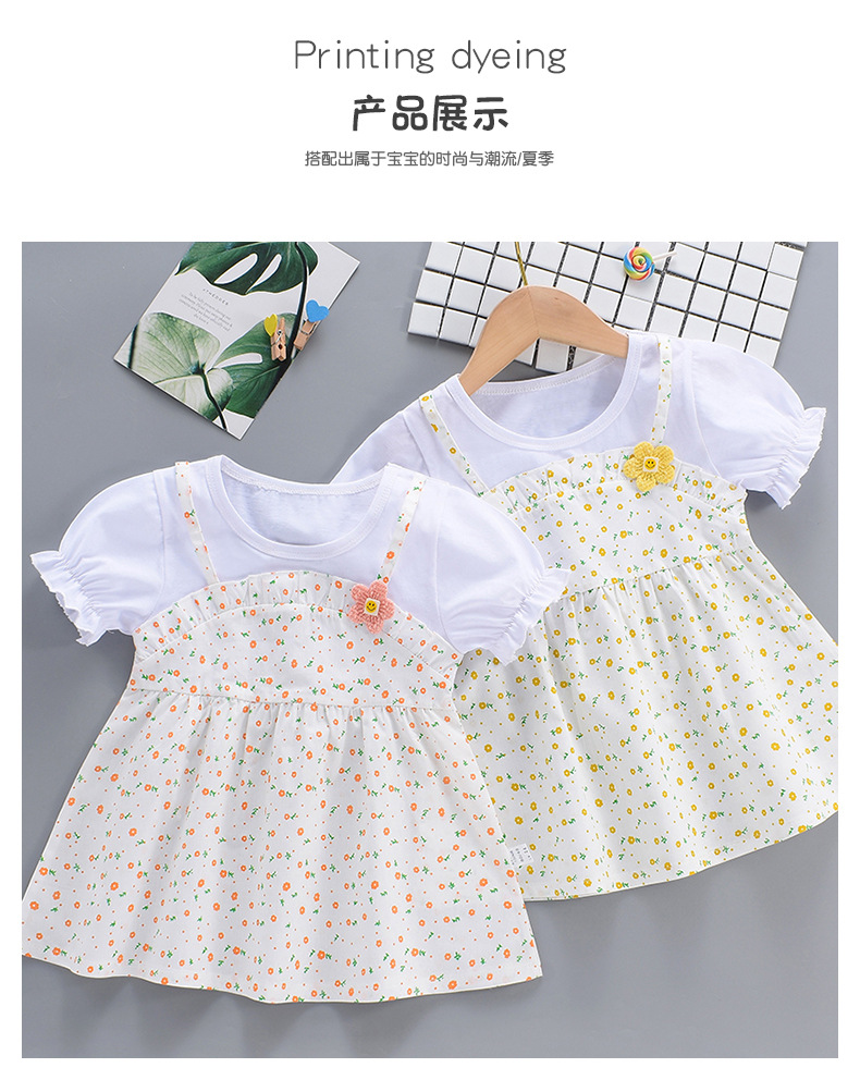 여자 드레스 여름 새로운 반팔 얇은 스타일 유행 아기 소녀 가짜 투피스 서스펜더 꽃 치마스토어 가기